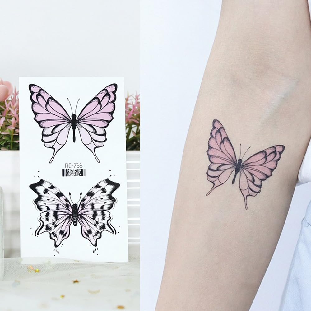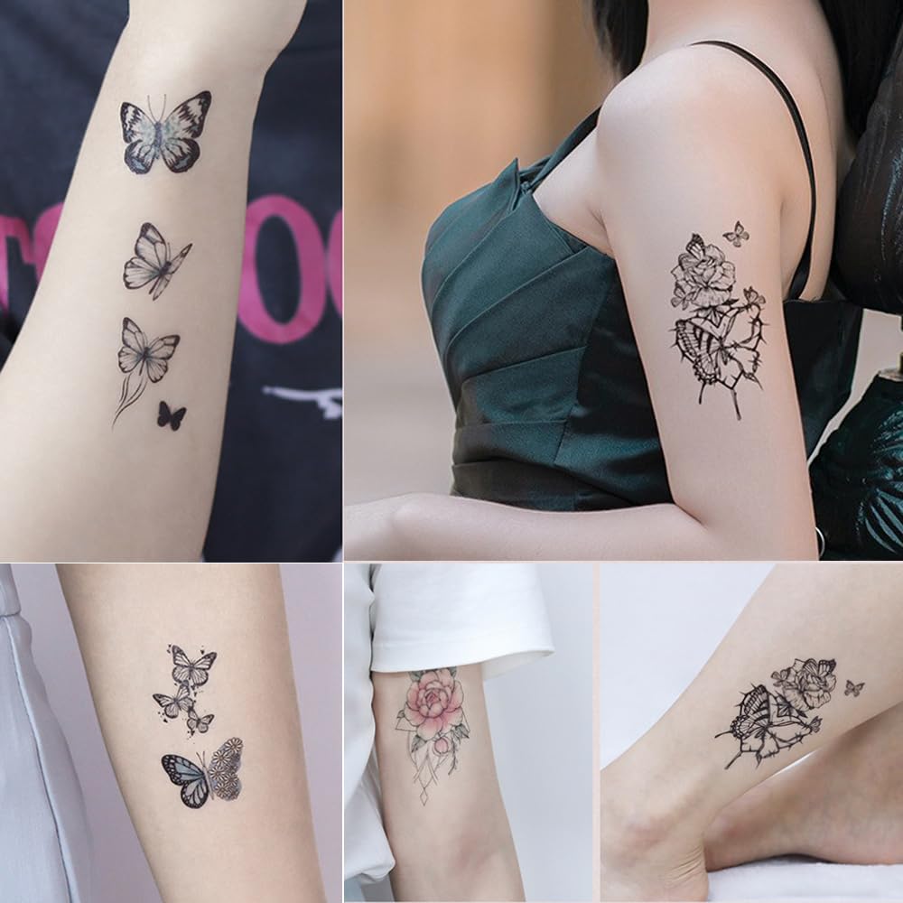 GOODCHI タトゥーシール 16枚セット かわいい 蝶 花 薔薇 2週間で消えるタトゥー タトゥーシール 防水 除去も便利 刺青シール (F)
