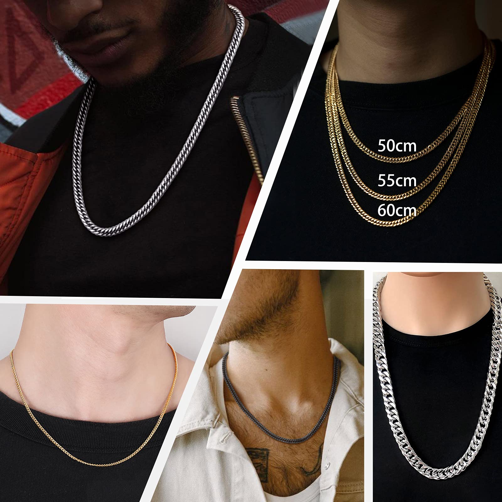 【色も!太さも!長さも選べる!】3.5mm、6mm、9mm、12mmの4太さ、シルバー、ゴールド、ブラックの3色、46cm、51cm、56cm、61cm、66cm、71cm、76cm、91cmの8長さ、全72種類を揃えました!