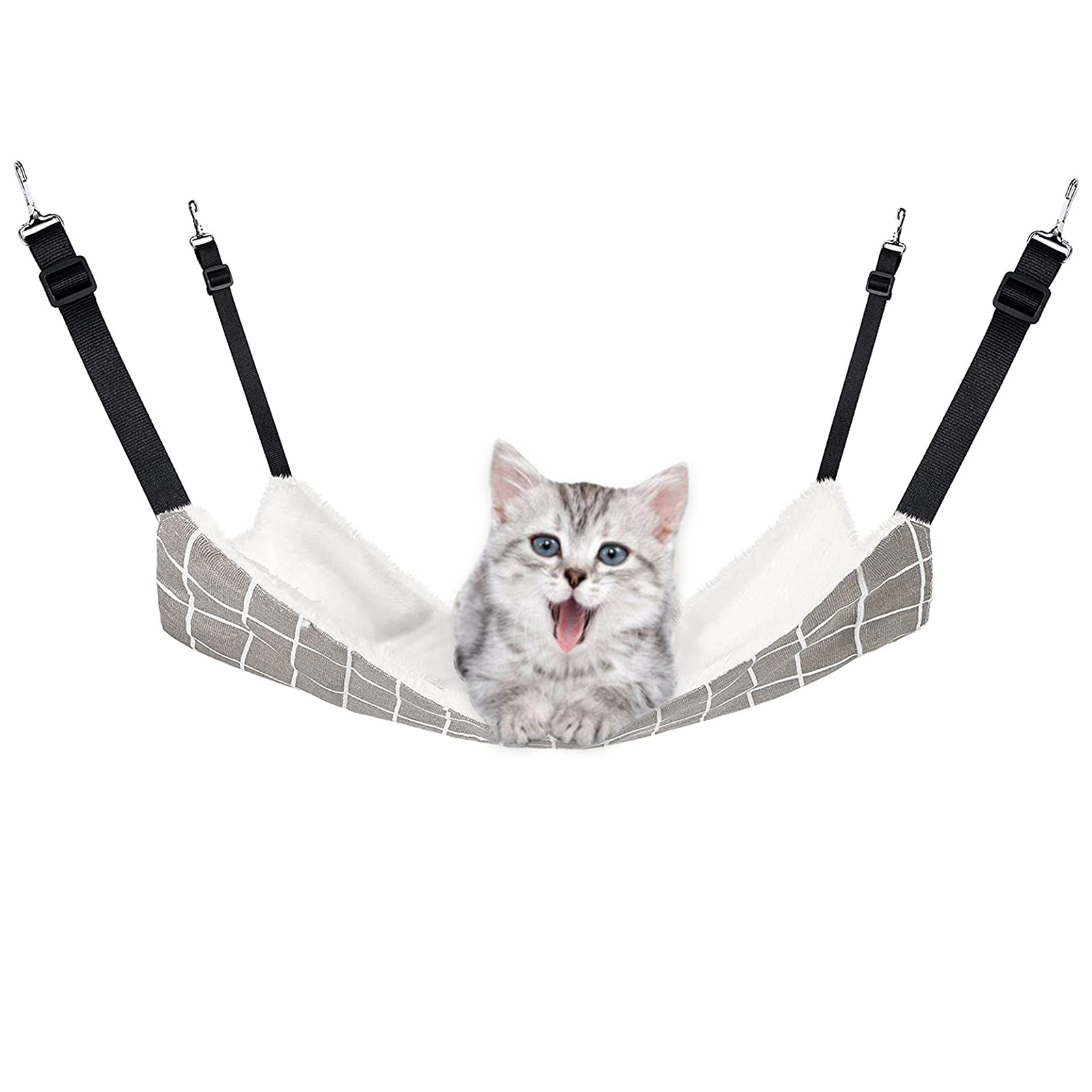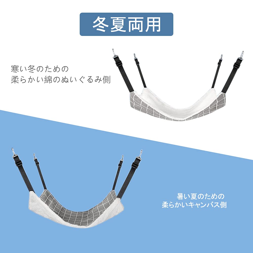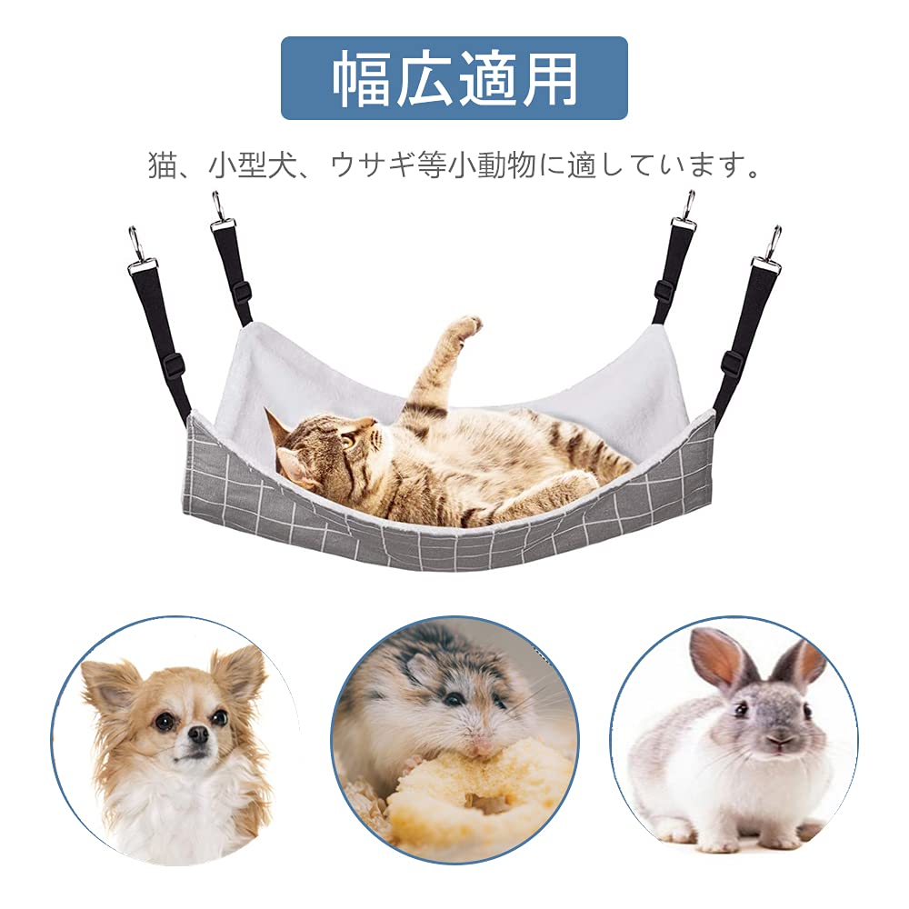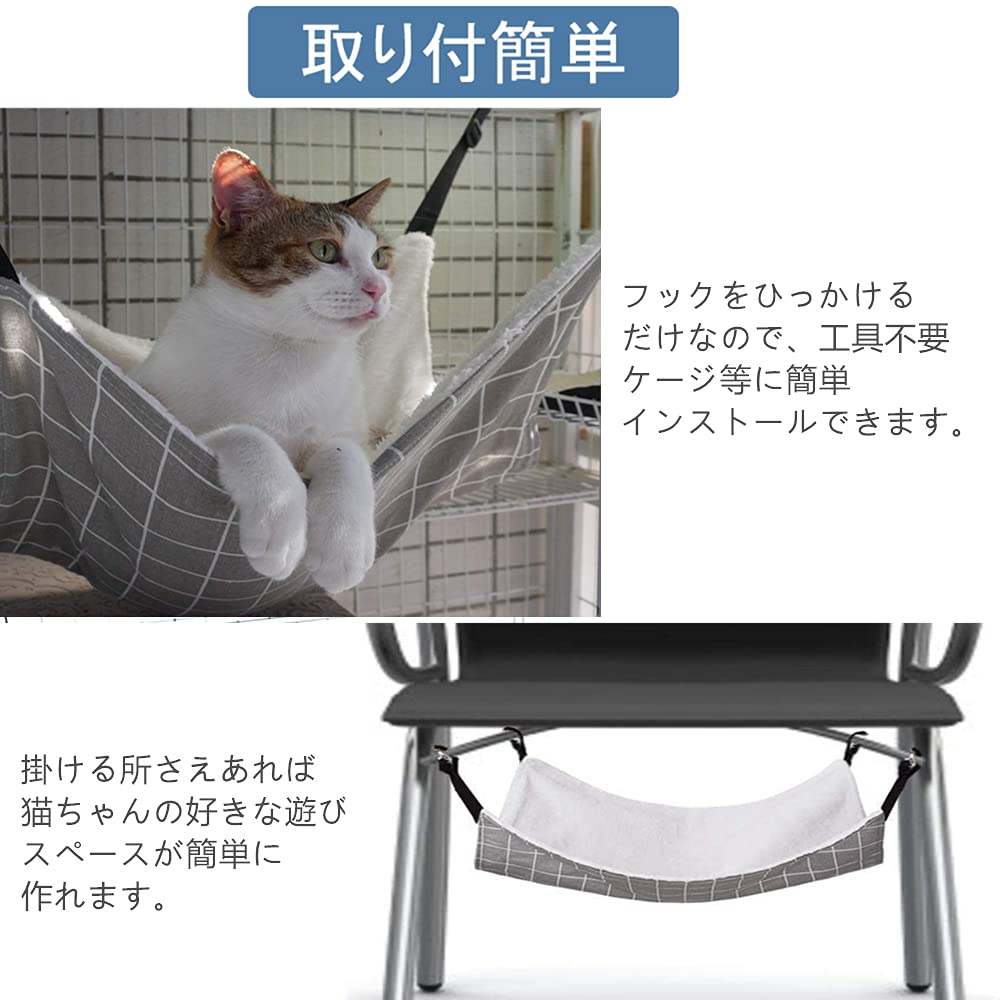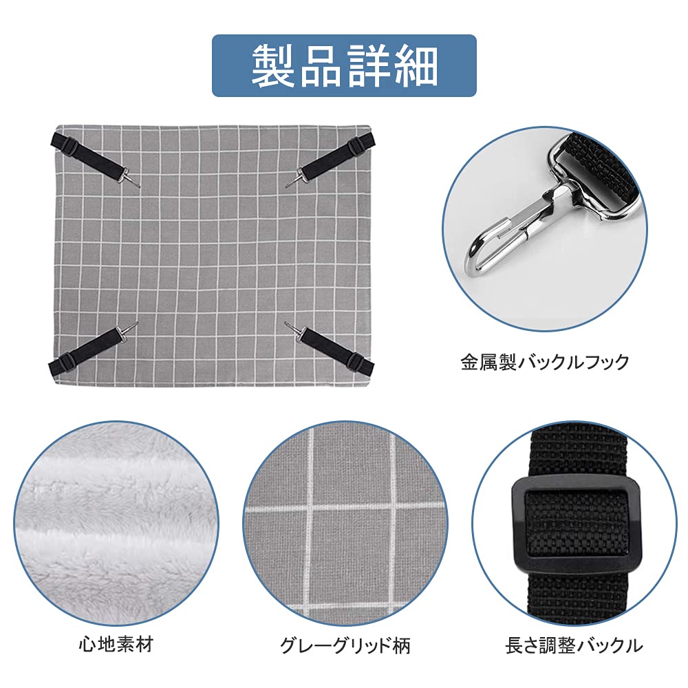 猫 ハンモックはんもっくキャット 椅子 ケージ用 大きい 耐荷重10KG サイズ調整可能 58cm x 48cm、遊び場 通気性 金具丈夫 冬夏両用長さ調節可能 両面使用 (グレーグリット, L)