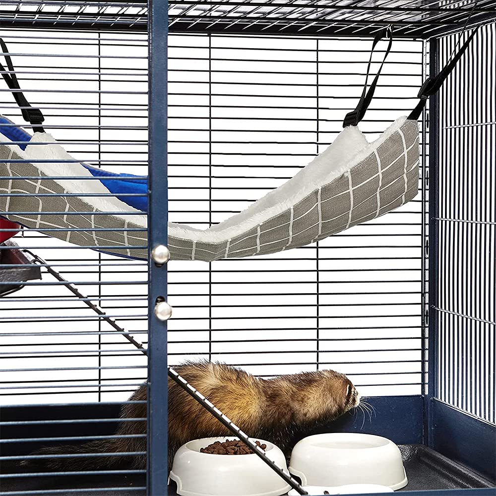 【努力特価】 猫 ハンモックはんもっくキャット 椅子 ケージ用 大きい 耐荷重10KG サイズ調整可能 58cm x 48cm、遊び場 通気性 金具丈夫 冬夏両用長さ調節可能 両面使用 (グレーグリット L)