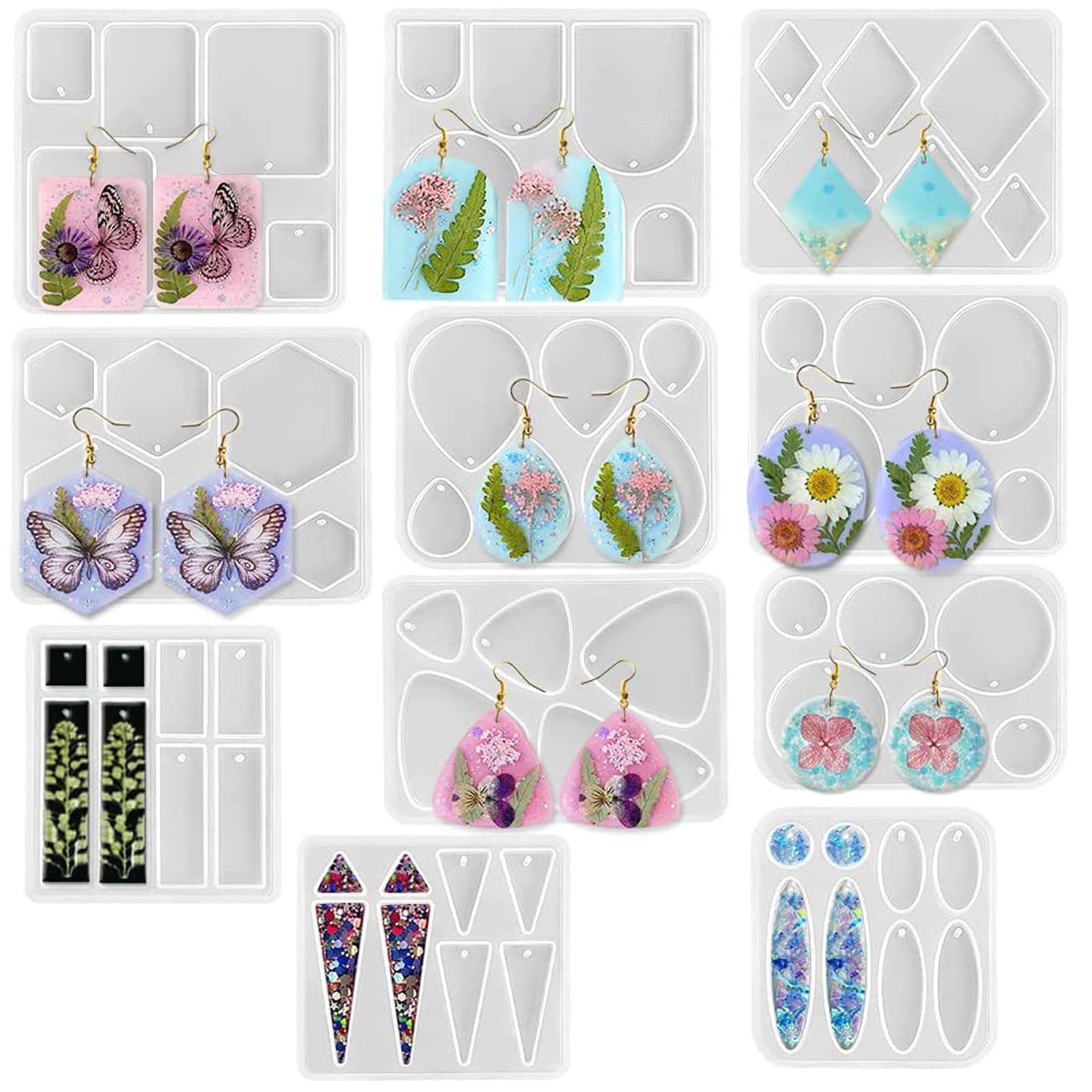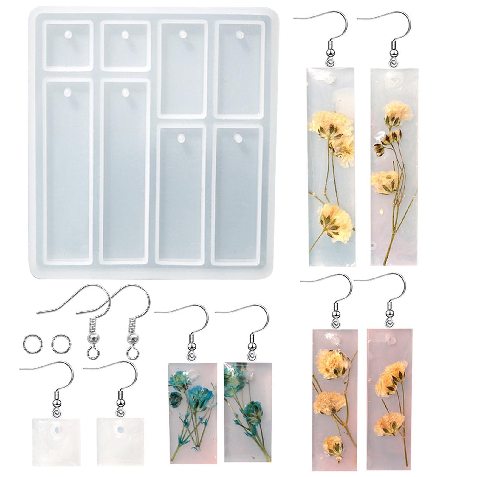 5WYOUKE 長方形 イヤリングモールド シリコンモールド レジン モールド 四角 イヤリング 金具付き 穴あけ サイズ違い エポキシ樹脂 手作り ペンダント ジュエリーモールド ピアス DIY 小さい UVレジン おしゃれ ギフト