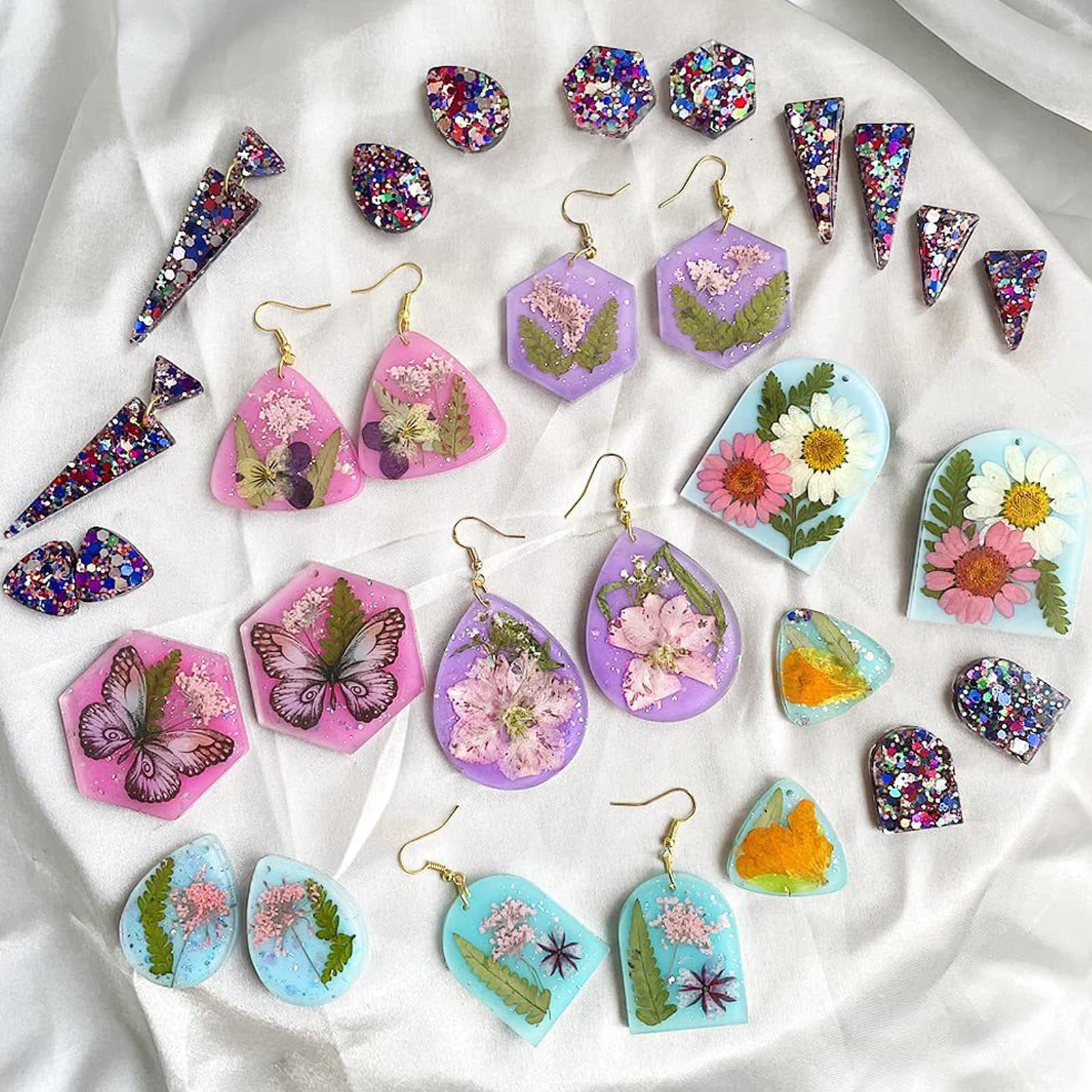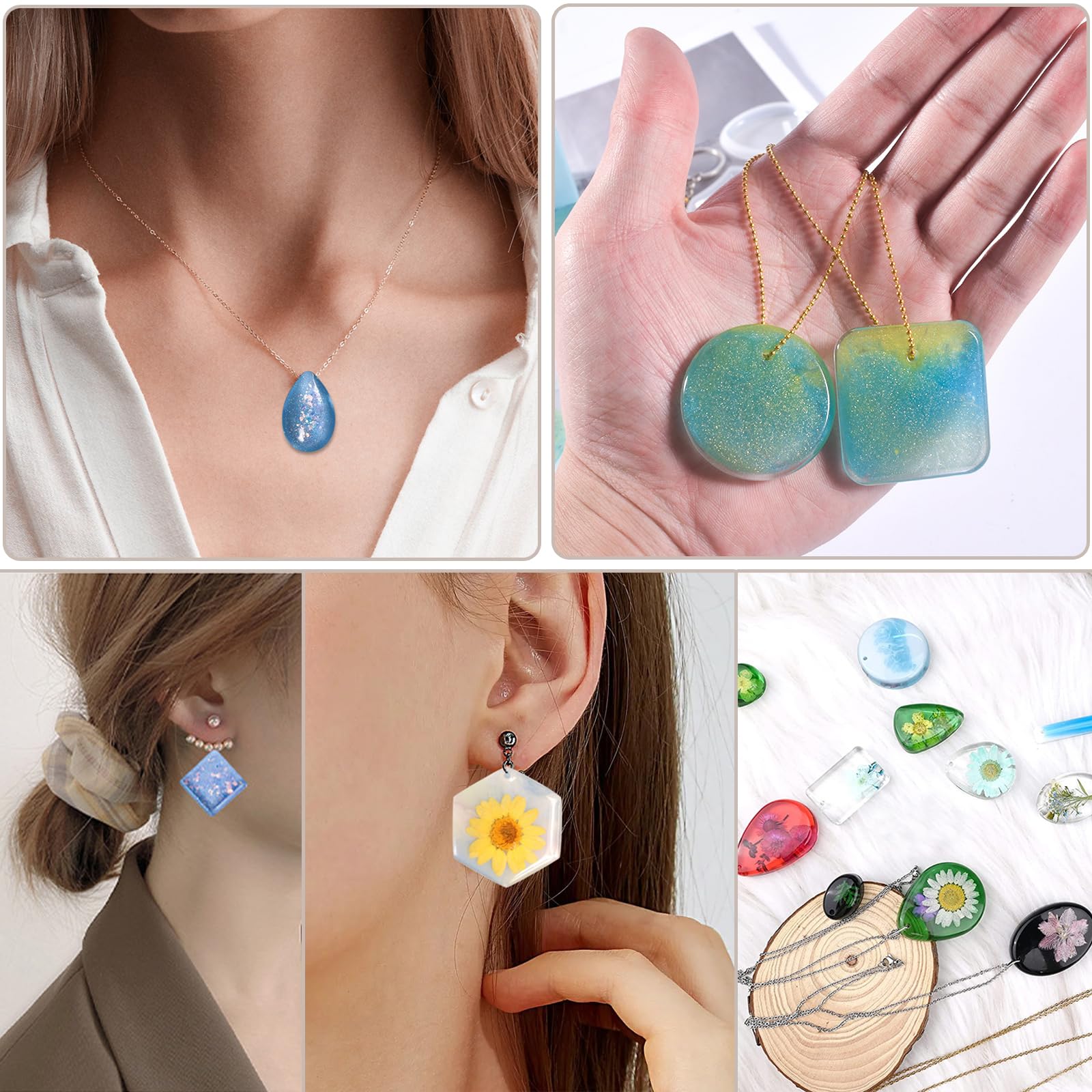 【広い適用】:さまざまなDIYプロジェクトに適しています。イヤリング、ネックレス、ペンダント、キーホルダー、バッグチャームなどのオリジナル手芸品の手作りにぴったりです。自分の好みにあわせて色を変えたり、お好きなラメやパーツ、デコ素材を組み合わせたりすることができます。