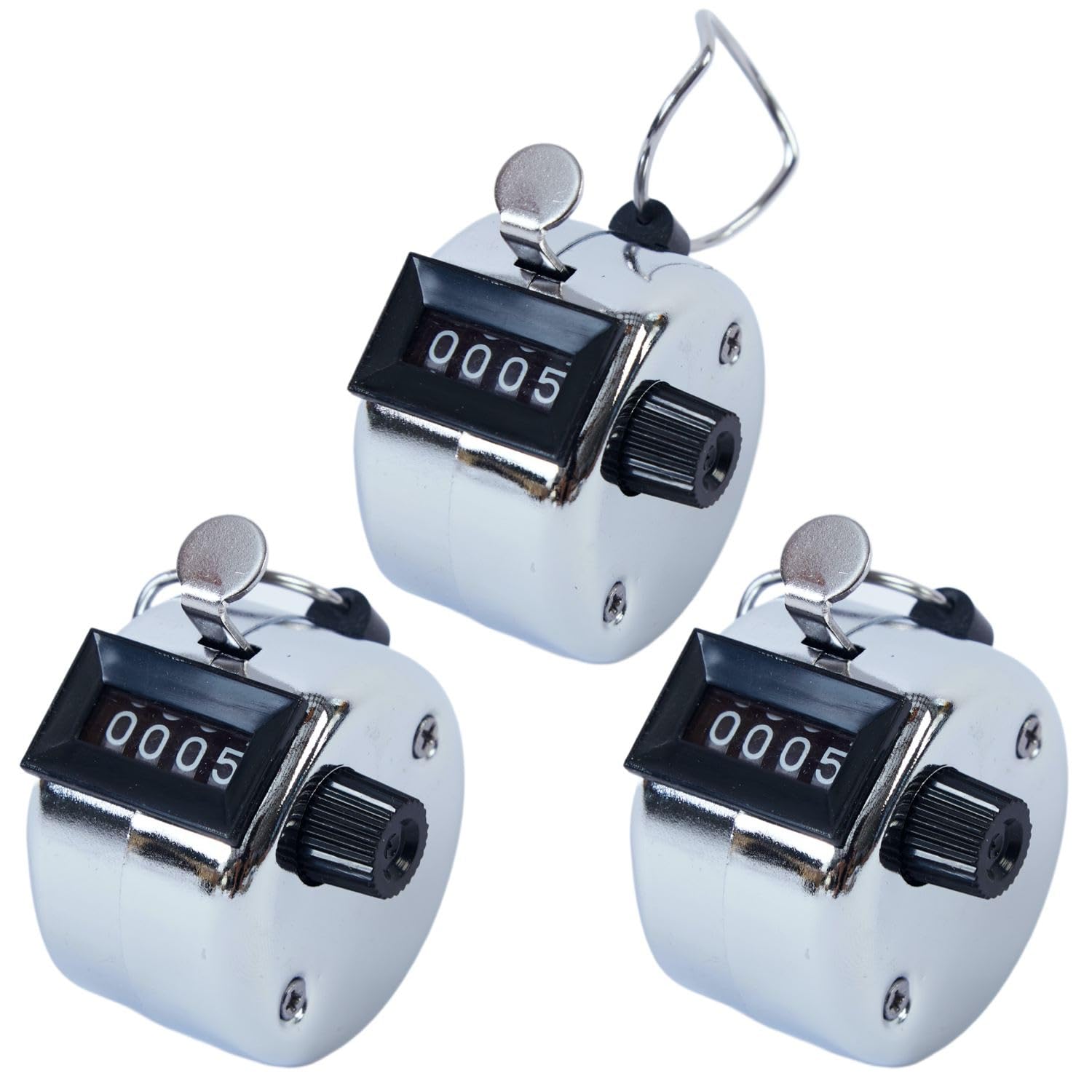 【努力特価】3個セット 数取器 カウンター 数取り器 4桁 手持ち型 プラス数取器 手動式リセット機能付き 小型軽量 金属製 防水仕様 持ち運び便利 スポーツ・競技用途向け・入場人数カウント適用(シルバー)