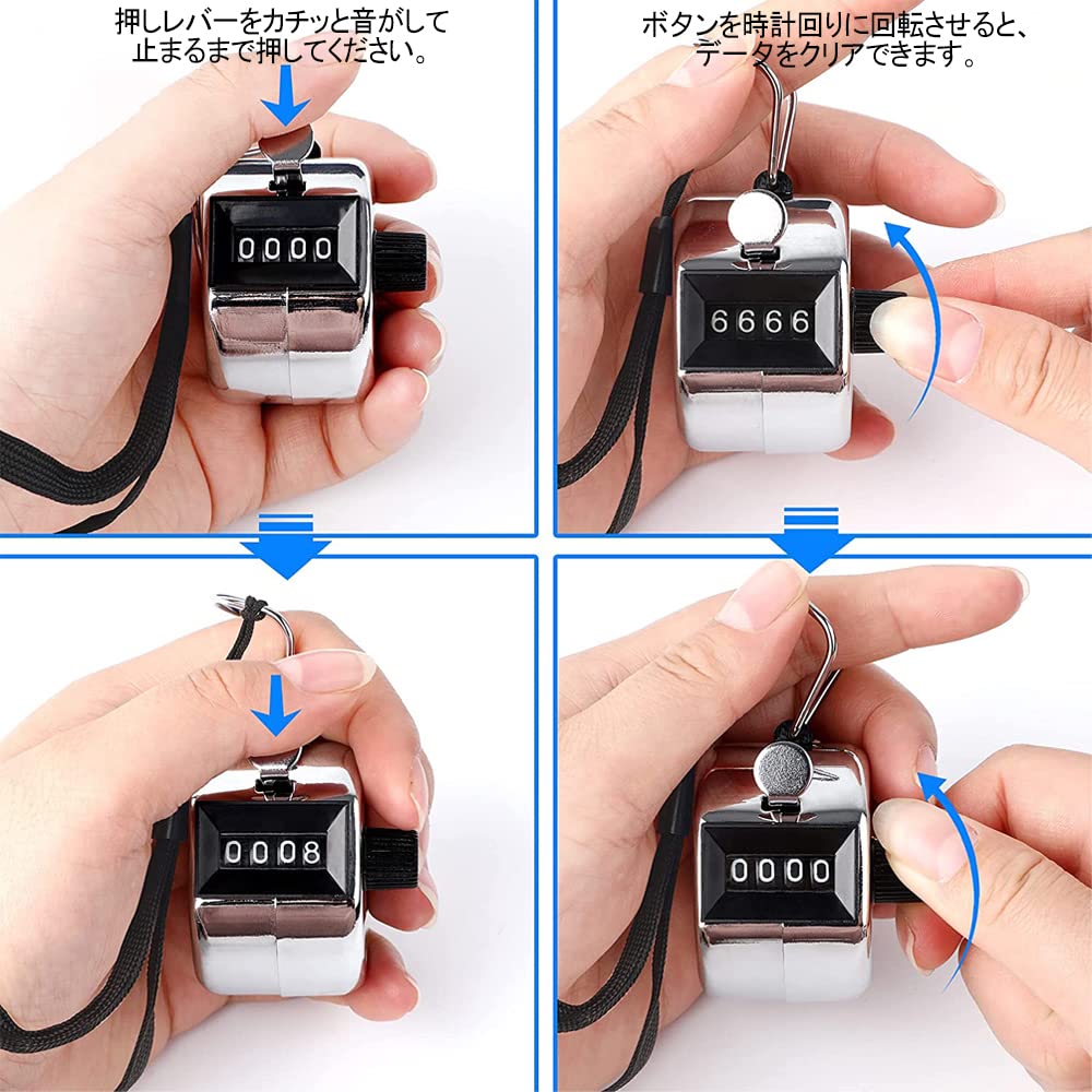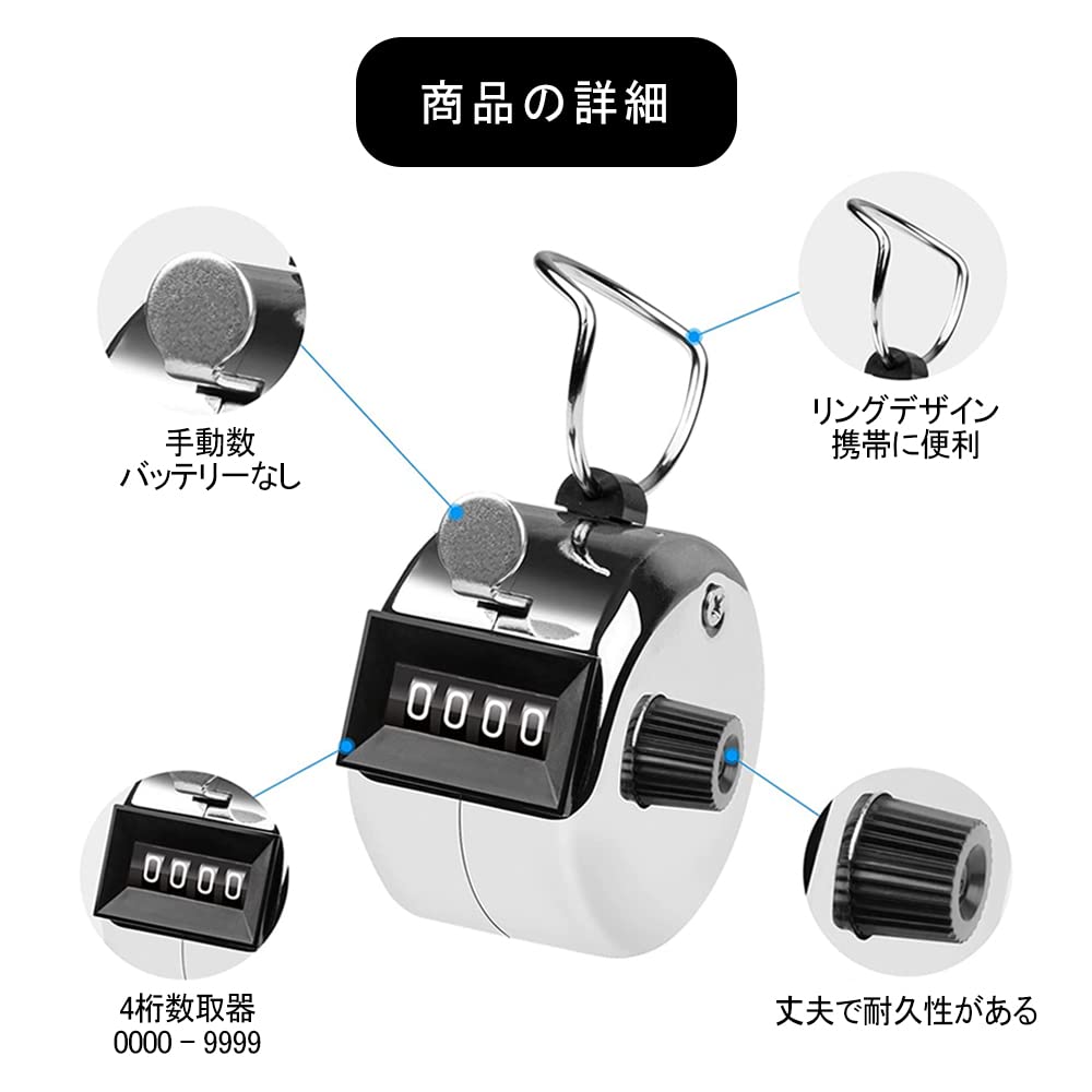 【電池不要】機械式構造で電池不要。4桁の計算機で、親指はハンドルを押すだけでカウントされ、時計回りに回転するだけで再設定で。