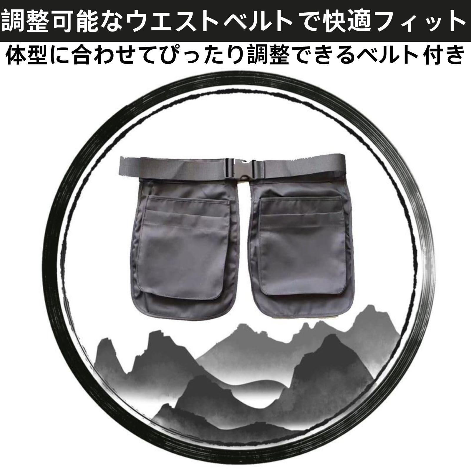 調整可能なウエストベルトで快適フィット 体型に合わせてぴったり調整できるベルト付き。バックル式で着脱も簡単なので、作業中の動作を妨げません。