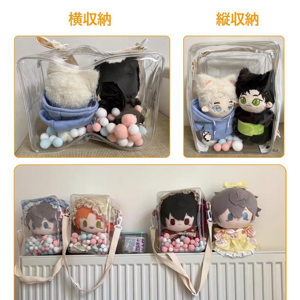 高透明度ディスプレイ:この痛バッグは高透明度のPVC素材を採用しており、ぬいぐるみやキャラクターフィギュアを完璧に展示できます。透明素材は観賞効果を確保し、あなたのコレクションをどこでも魅力的に見せます。