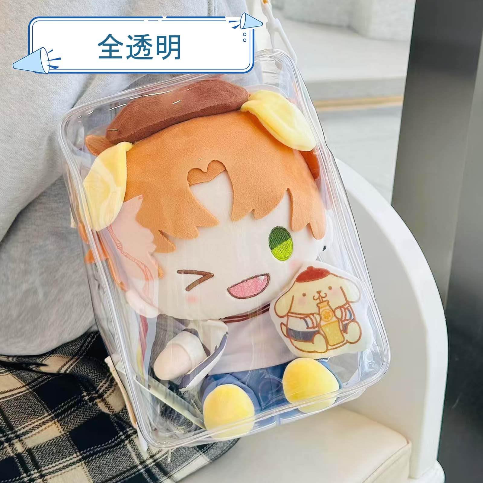【在庫のみ】痛バッグ ぬいぐるみポーチ 2つの携帯方式 PVC 大容量 全透明 取り出し便利 ぬいぐるみ用 持ち運び バッグ ぬいぐるみ 見せバッグ おしゃれ かわいい お出かけ コンサート 旅行用 20-25cmぬいぐるみ用