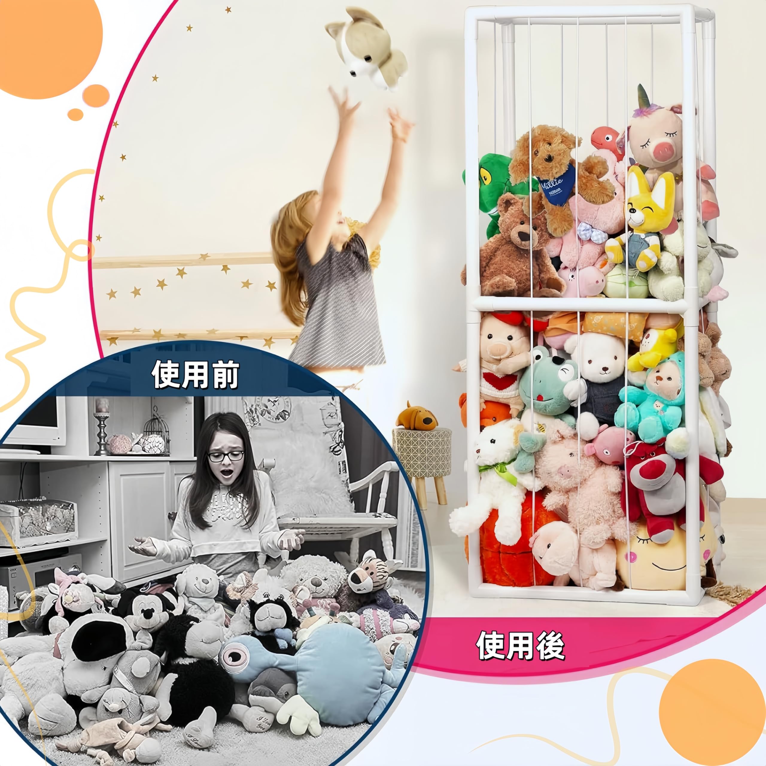 ??【大容量&省スペース】縦型デザインのおもちゃ収納棚です。大容量でたくさんのぬいぐるみを収納できます。スペースを取らずにたくさんの場所に置くことができます。もうぬいぐるみを踏んで転ぶことはない。