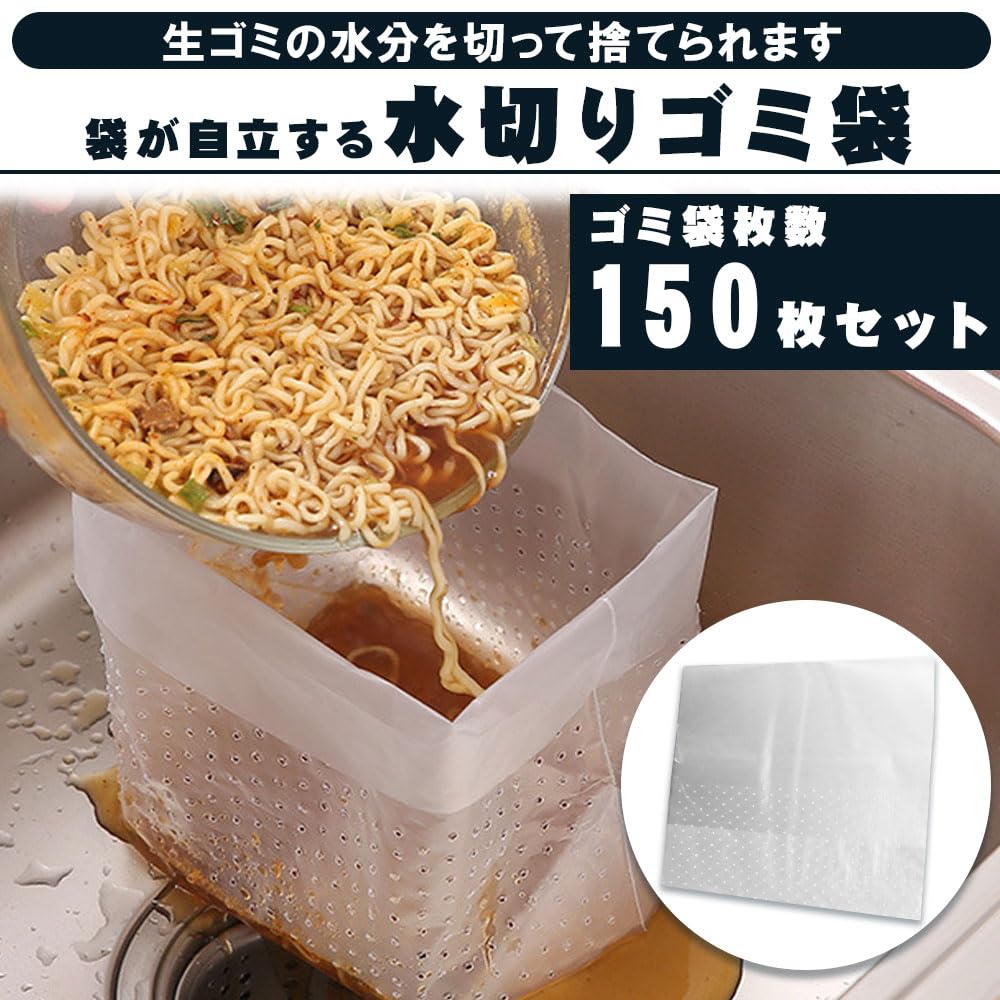 【努力特価】youmains 自立式ゴミ袋 150枚セット 水切り袋 メッシュ底 使い切り 野菜の水切り 通気性 PP素材