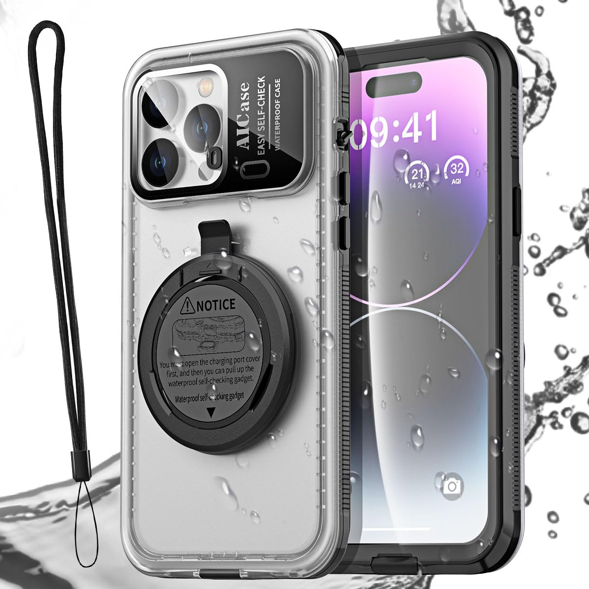 付加価値: AICase for iPhone 14 Pro Max 防水電話ケースを購入すると、ストラップ x 1、クリーニング クロス x 1、ユーザー マニュアル x 1、1 年間のと生涯カスタマー サービスが含まれます。顧客満足度が当社の最優先事項です。