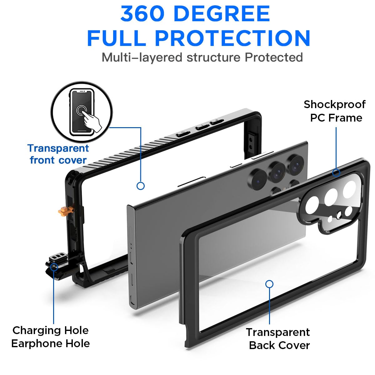 AICase Samsung Galaxy S24 Ultra ケース 防水 クリア 内蔵スクリーン プロテクター 防雪、防塵、耐衝撃、IP68 認定 [Real 360] 全身保護 完全密閉 水中 S24 Ultra 6.8 インチ用