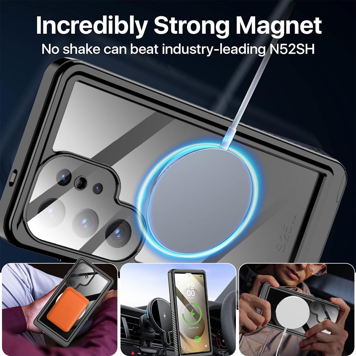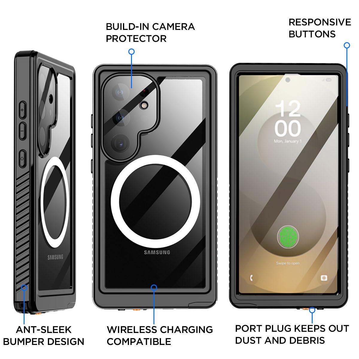 AICase防水ケース Samsung Galaxy S25 Ultra用 MagSafe対応,防雪,防塵,耐衝撃,IP68認証 360フルボディプロテクション 完全密封水中カバー