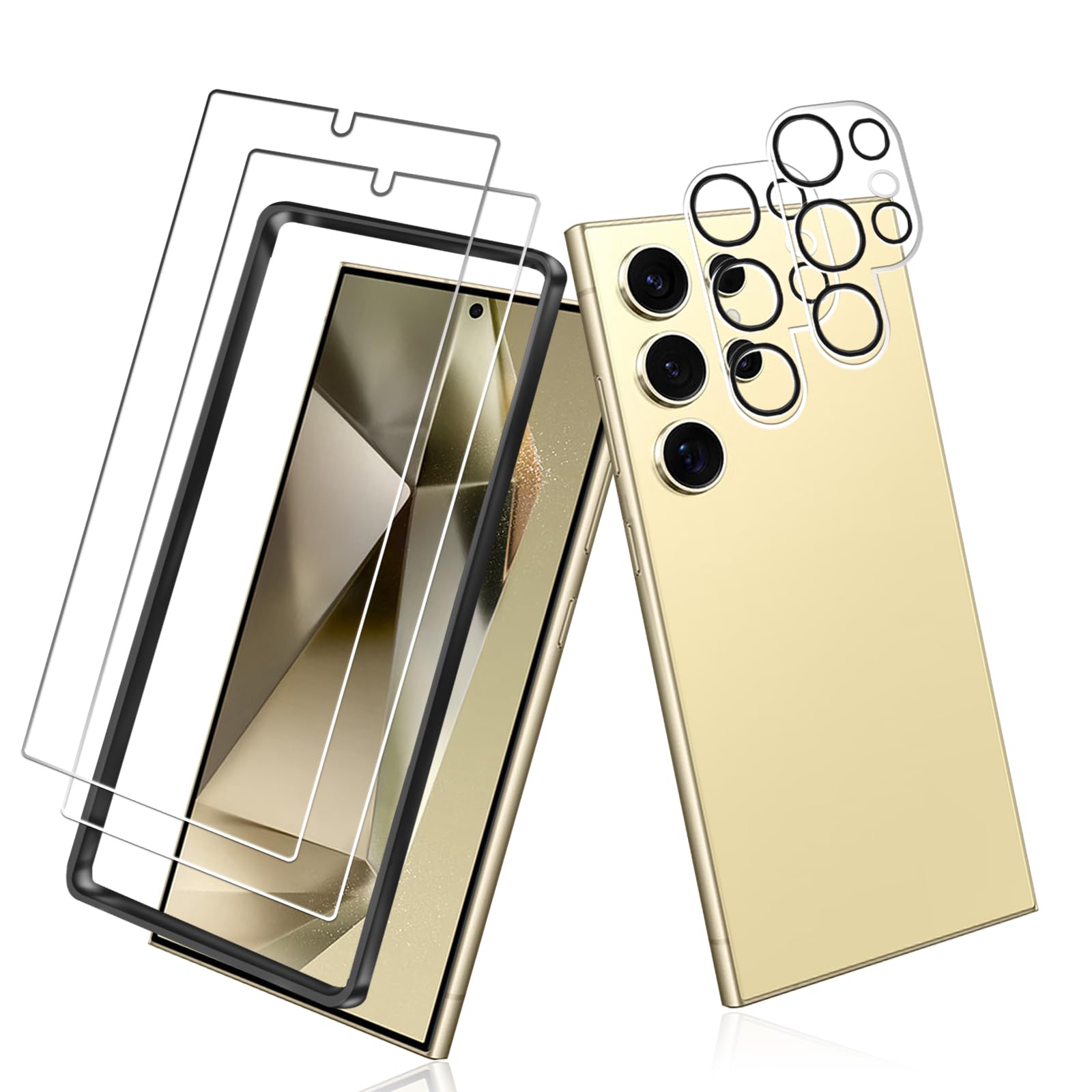 【特価処分】【4枚セット】 2枚 Galaxy S24 Ultra ガラスフィルム ギャラクシー S24 Ultra 専用保護フィルム + 2枚 For Galaxy S24 Ultra カメラ保護フィルム 強化ガラス 超薄型 液晶保護フィルム FOR S24 Ultra 専用の 日本旭硝子素材AGC 高透過率 硬度9H 飛散防止 ラウンドエッジ加工 Galaxy S24 Ultra 用の 液晶保護フィルム PCduoduo 【ガイド枠付き】