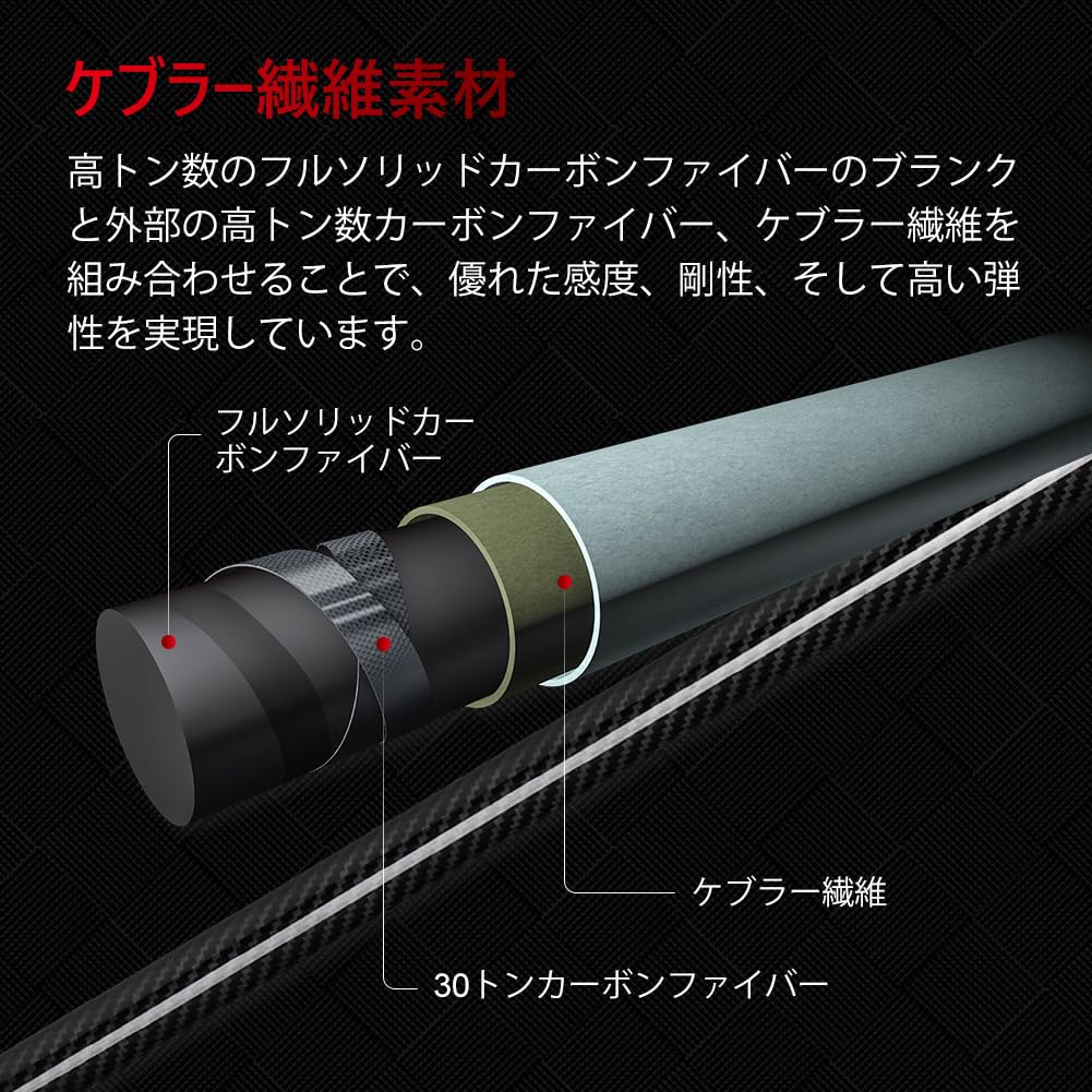 材料:炭素繊維はクロス巻いて高い重さが受けられる、SICガイド.