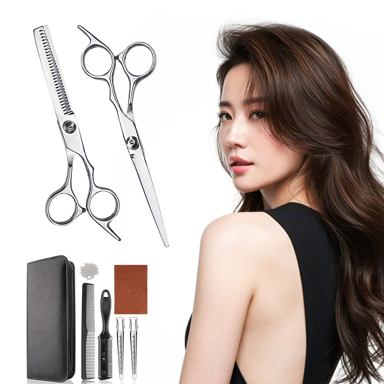 家庭で簡単にプロの仕上がりを実現できる「ヘアカットシザー9点セット」です。高品質ステンレス製のカットはさみとすきばさみを中心に、理美容師監修の設計で初心者でも失敗せずに使えます。赤ちゃんや小さなお子様の前髪カット、メンズ・レディースのセルフカットにも対応し、家族全員の髪の手入れがこれ一つで可能です。 軽量で持ちやすい人間工学デザインのハンドルは長時間の使用でも疲れにくく、安全性も確保。鋭い切れ味で髪をスムーズにカットでき、髪へのダメージも最小限に抑えます。さらに、9点セットをまとめて収納できる専用ケース付きで、持ち運びや保管も便利です。 ご自宅での散髪、セルフカット、赤ちゃんや子供の前髪カット、メンズ・レディースの髪型調整まで幅広く活躍する、実用性と安心感を兼ね備えた理想的なヘアカットシザーセットです。