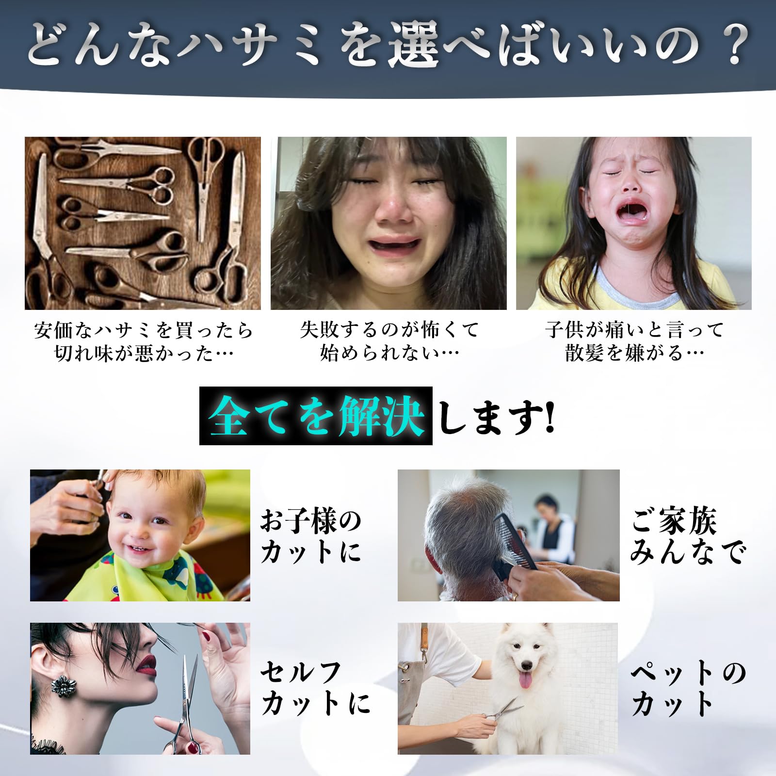 【家庭用・幅広い年齢層に対応】 赤ちゃんや小さなお子様、高齢者の髪のカットにも対応。外出せずに自宅で簡単に散髪でき、家族全員のヘアケアをサポートします。