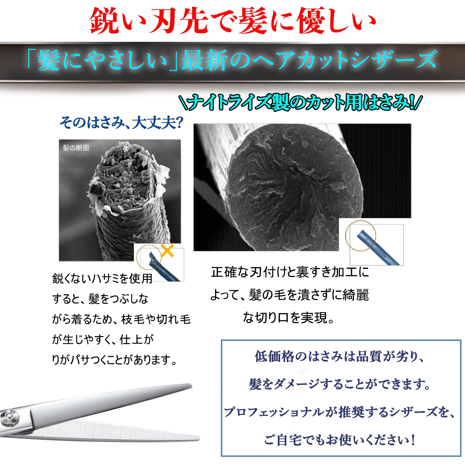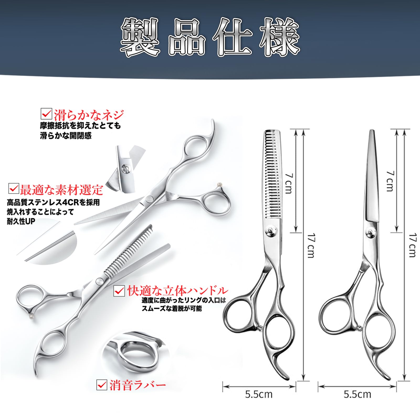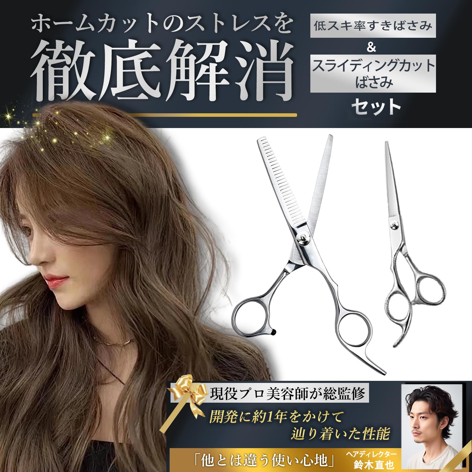 【初心者でも失敗しない設計】 理美容師監修の安全設計で、セルフカットや初心者でも扱いやすく、前髪や毛先の微調整も簡単。すきばさみとカットはさみのセットで、自然な仕上がりが可能です。