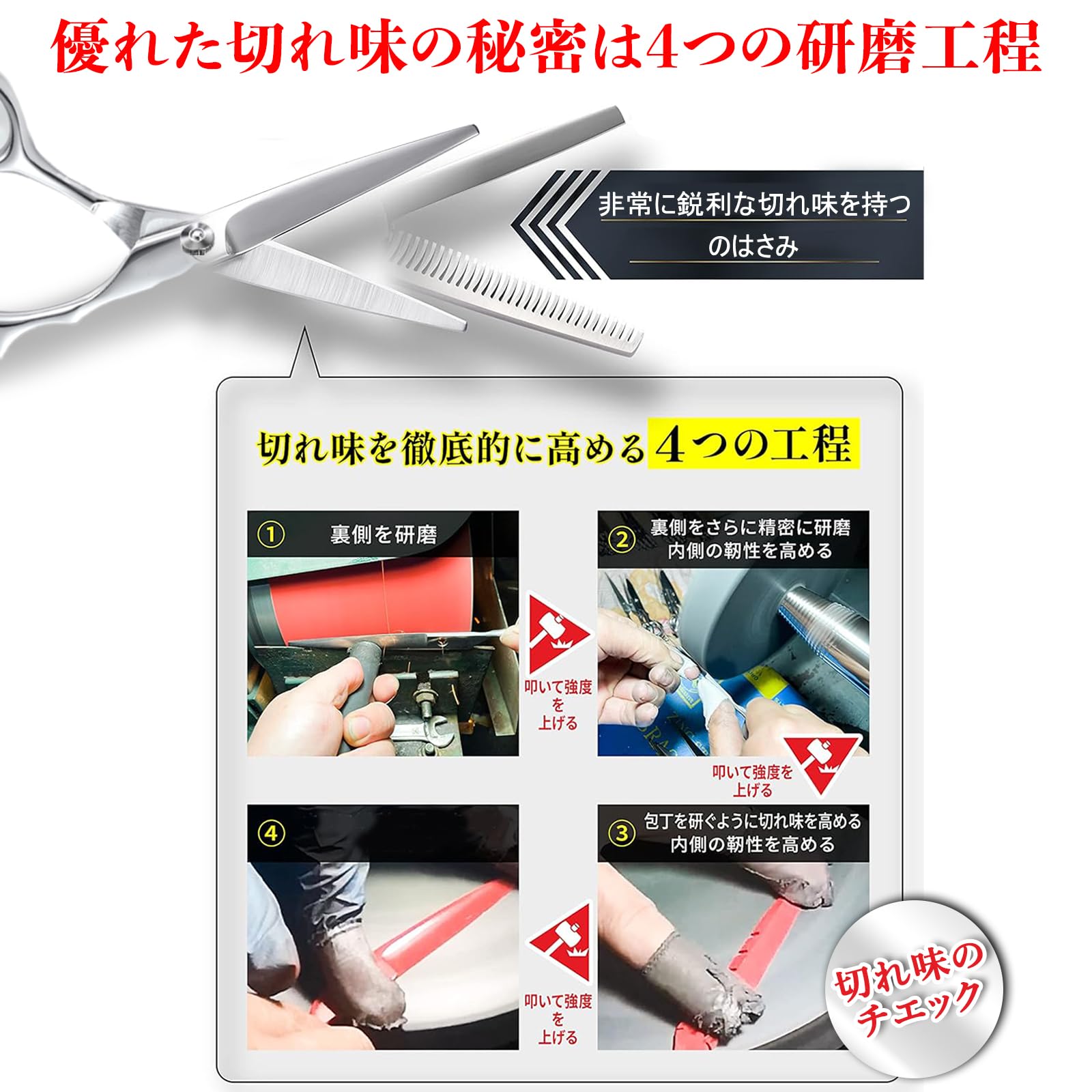 【プロ仕様の高品質ステンレス製】 耐久性と切れ味に優れた高品質ステンレス鋼を採用。錆びにくく長持ちし、髪をスムーズにカットできます。プロの理美容師も納得の仕上がりで、家庭用にも最適です。