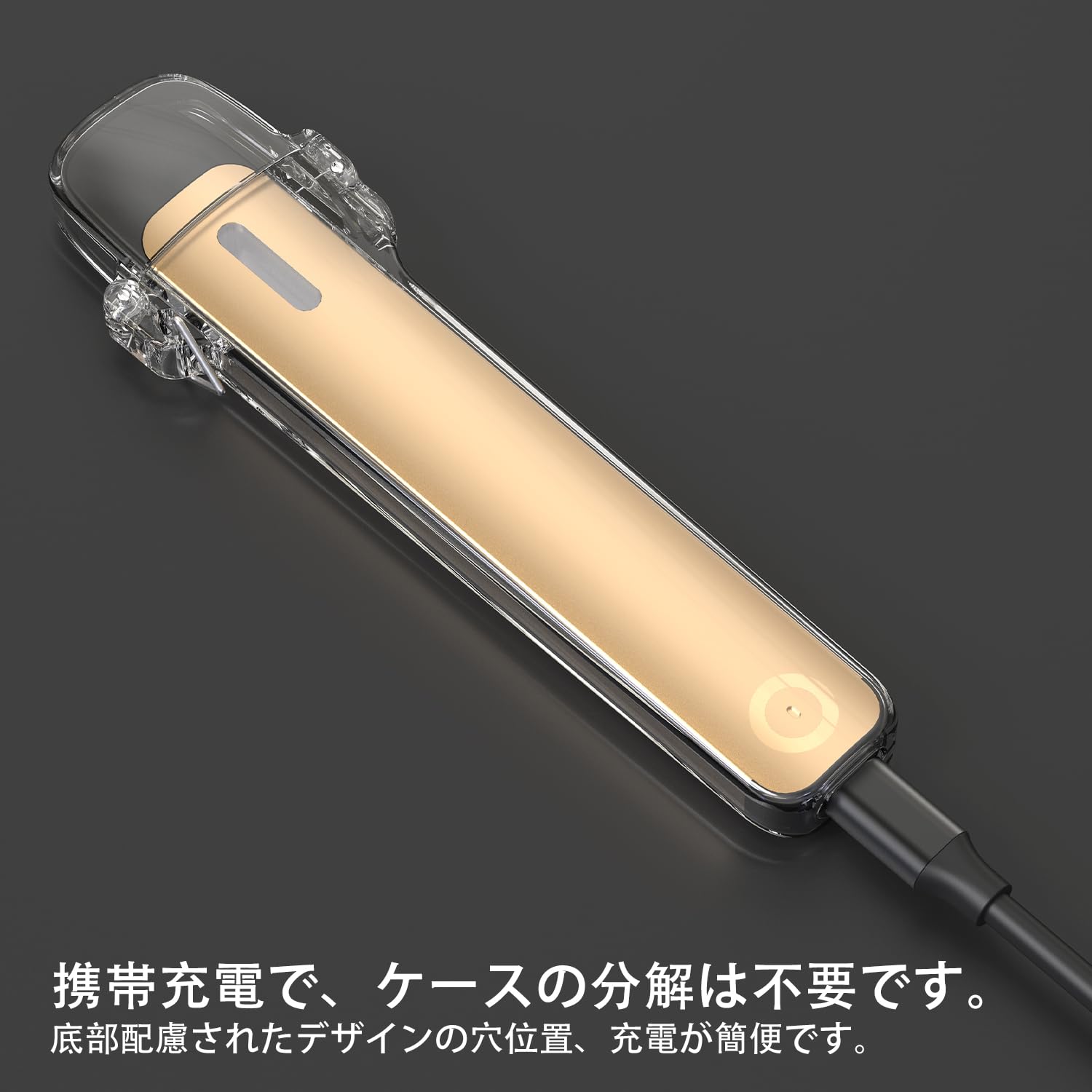 【装着したまま充電可】:ケースの底に充電穴があり、ケースをそのまま装着して充電できます。電池残量もはっきりみえます。