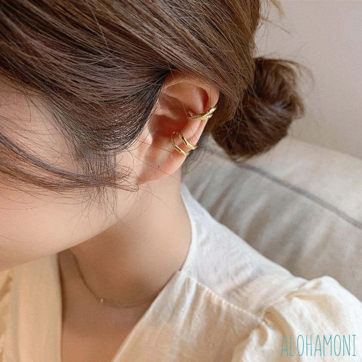 ■つける位置も自由自在、重ね付けが楽しめます♪ 1つだけつけても、2つつけても、他のデザインのイヤーカフやピアスと重ね付けしてもおしゃれ度UPです♪