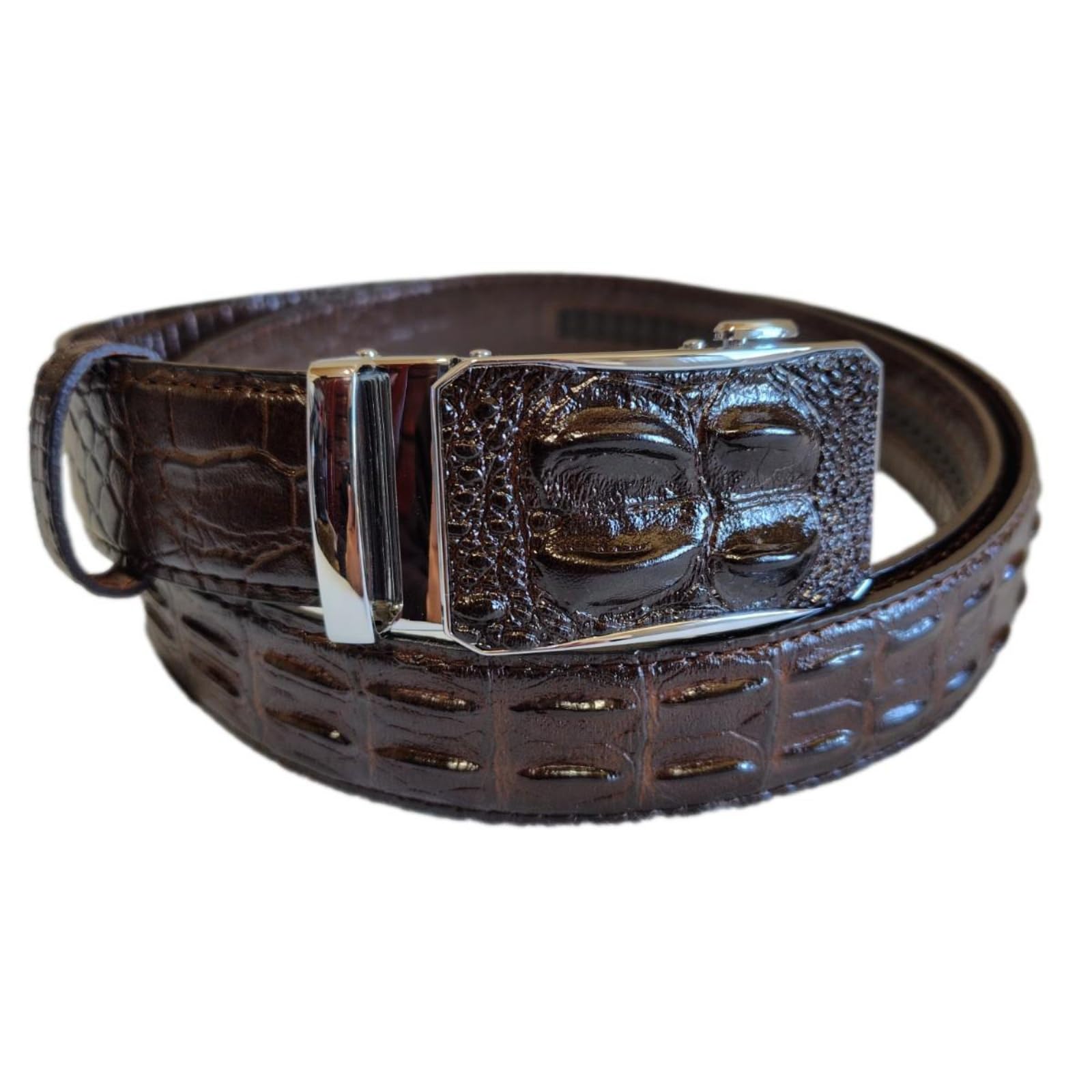 [Cazycazun] クロコダイル 型押し 本革 ベルト メンズ 自動 バックル レザー ビジネス カジュアル ギフト