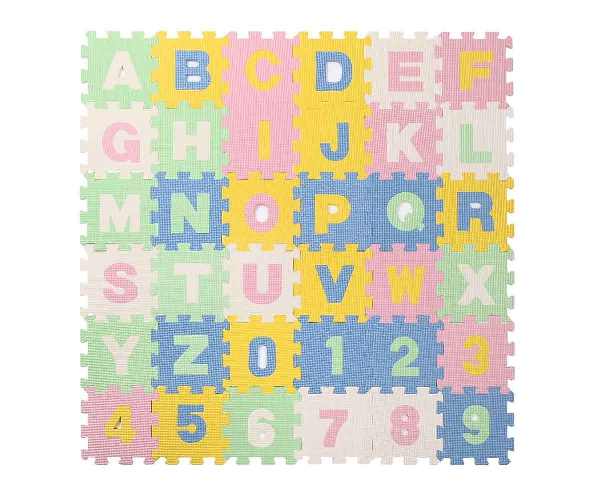 ユノックス 床材 ジョイントマット パズルマット 数字+アルファベット 36枚セット [約15x15x厚さ1cm/子供 キッズ プレイマット/防音対策/床の傷防止/床暖房対応]