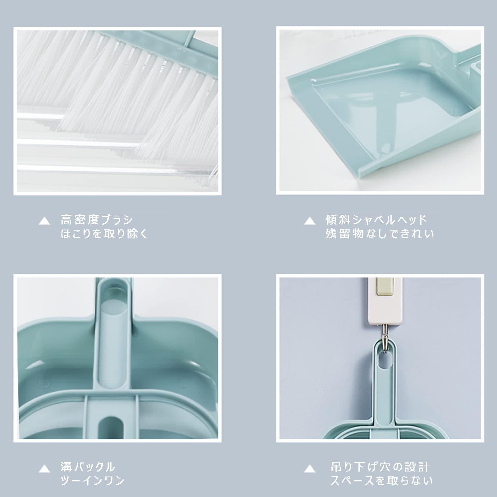 【パッケージ付属】ちりとりとブラシセット(ほうきブラシ2個、ちりとり3個)で、お手入れの悩みをすぐに解決し、健康的な環境を演出します