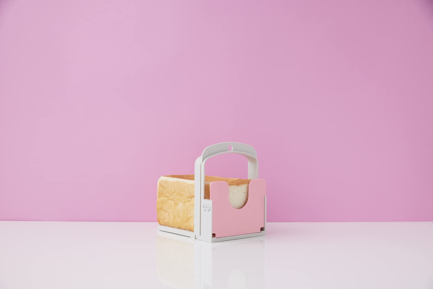 【在庫のみ】伊勢藤(ISETO) 食パンスライサー 食パンスライサーAC ピンク 幅15.0×奥行6.6~22.8×高さ19.9cm 日本製 抗菌 抗菌加工 吊り下げ 折りたたみ コンパクト 家庭用 1斤パン 高級 食パン I-610