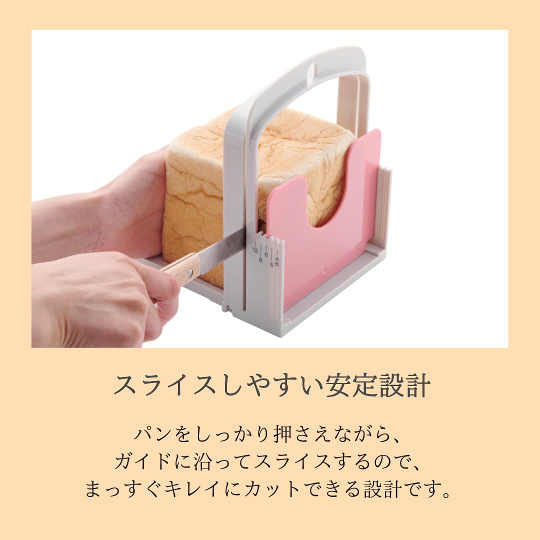 伊勢藤(ISETO) 食パンスライサー 食パンスライサーAC ピンク 幅15.0×奥行6.6~22.8×高さ19.9cm 日本製 抗菌 抗菌加工 吊り下げ 折りたたみ コンパクト 家庭用 1斤パン 高級 食パン I-610