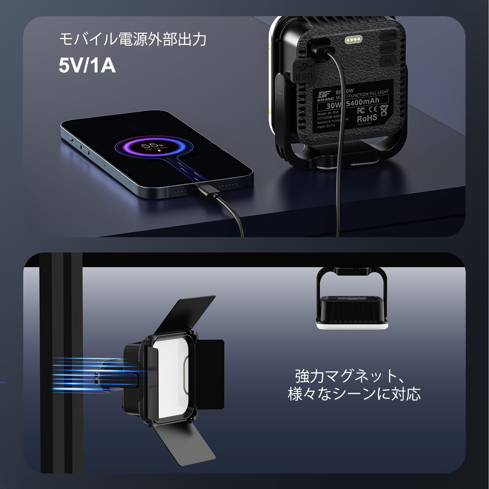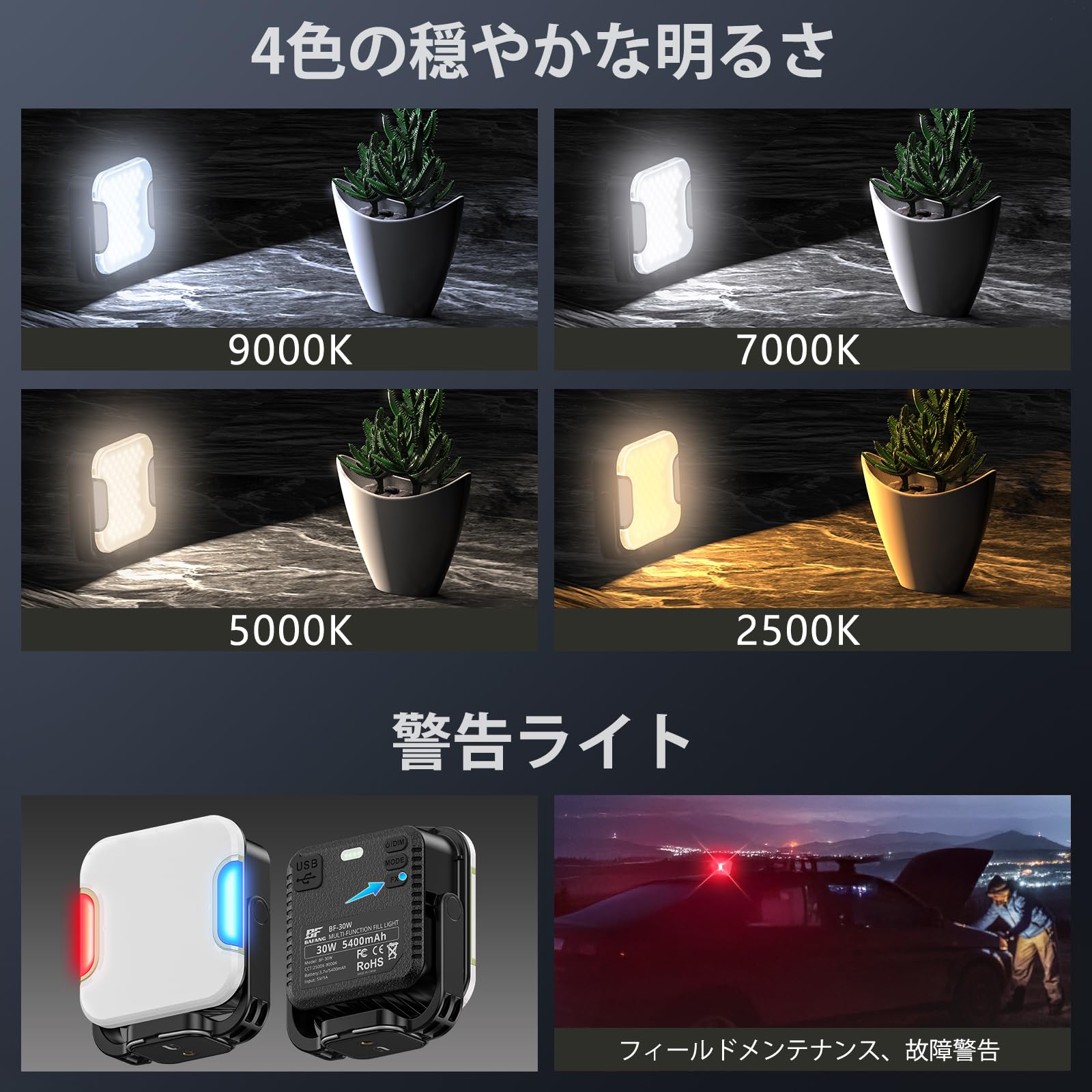 【在庫処分】BF BAFANG LEDランタン キャンプランタン 5400mAh 大容量バッテリー 遮光板付き キャンプライト 180°回転 マグネット付き 2500k-9000k色温 アウトドアライト 138個LEDビーズ 高輝度 ledライト 吊り下げ可能 作業灯 1/4 ネジ付き三脚接続可能 充電式 キャンプ用品/登山/停電対策/夜釣り/防災/緊急
