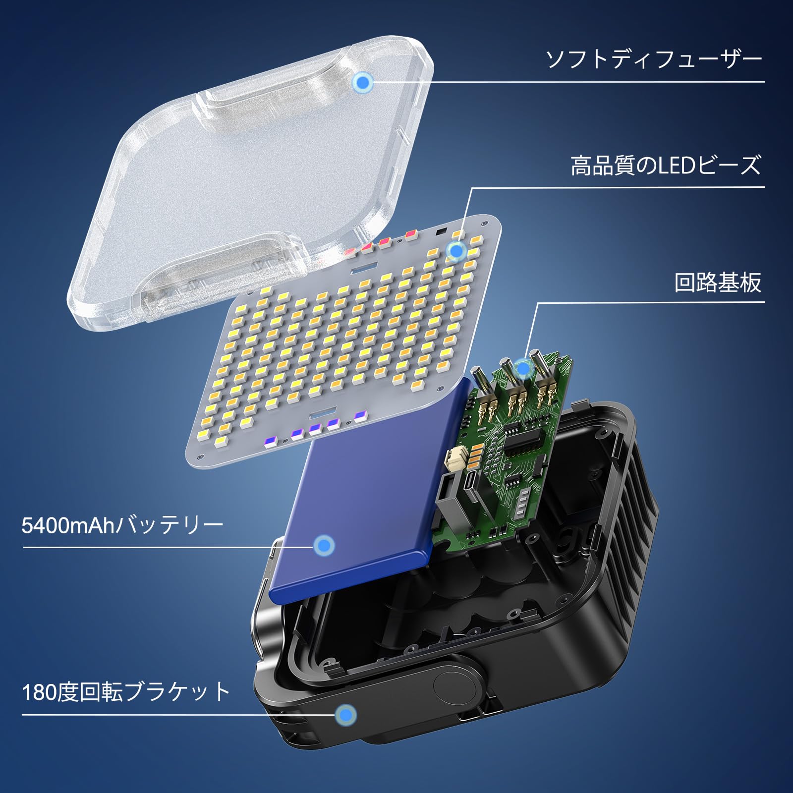 【4段階色温度 138個のLEDライトビーズ 高輝度】キャンプライトは4段階の色温度に切り替えができます。138個のLEDライトビーズが内蔵されており、夜間撮影の品質を向上させるために光の問題を解決します。4段階の明るさ調節が可能。様々なシーンに合わせた最適な光を使用します。