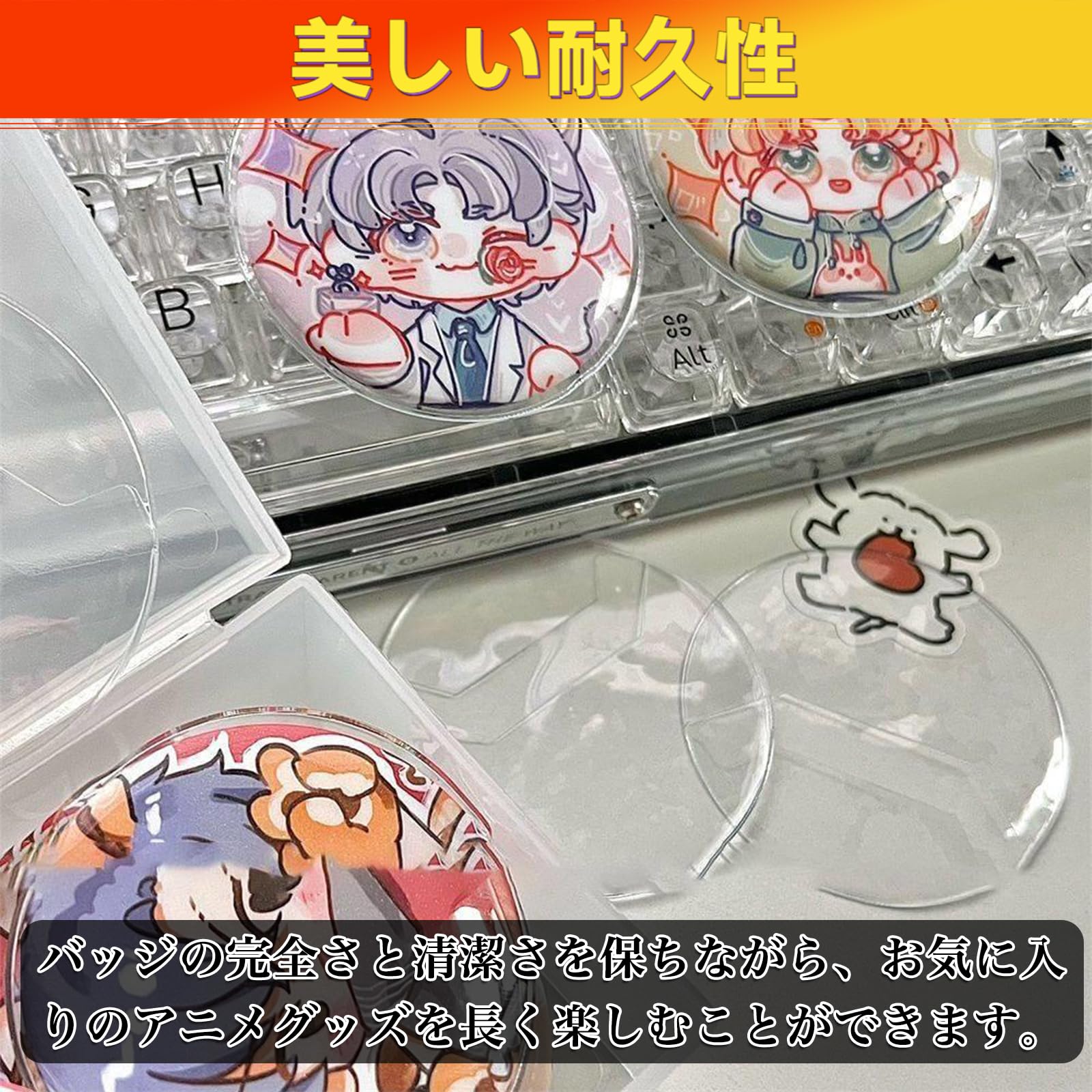 多様な用途:MAEXUS 缶バッジカバーは、アニメグッズのバッジの保護や収納に最適です。バッジの完全さと清潔さを保ちながら、お気に入りのアニメグッズを長く楽しむことができます。また、キーホルダーや他の小物の収納にも使用できます。