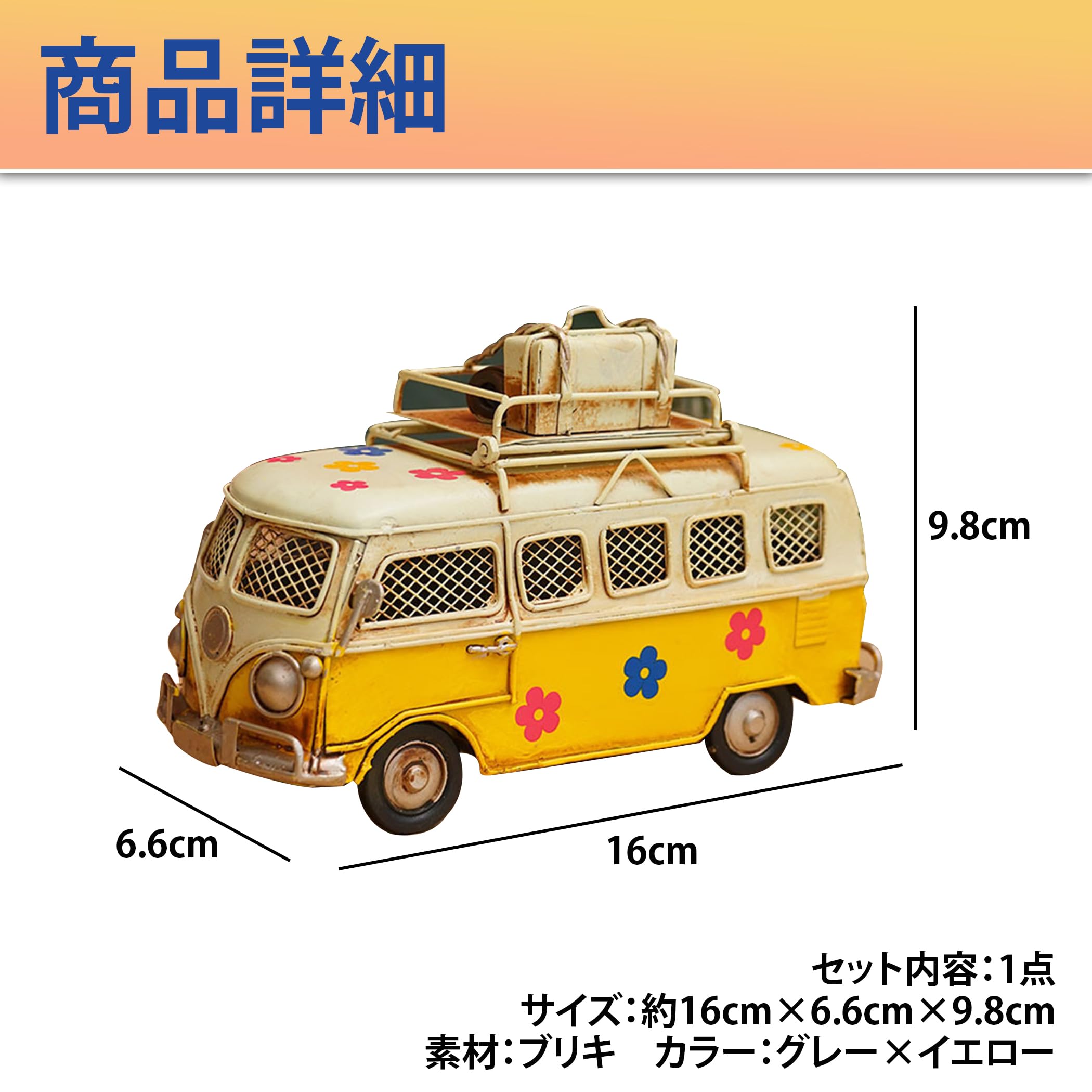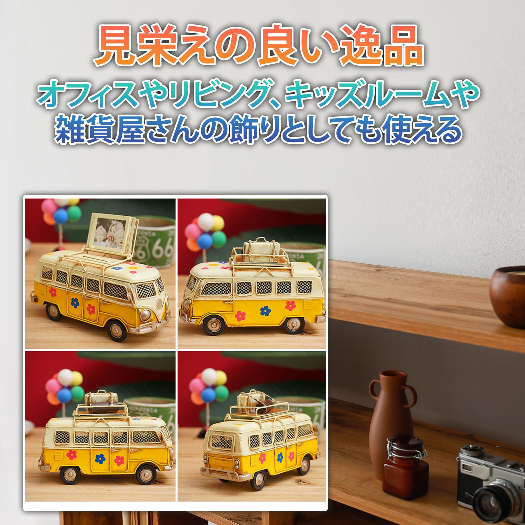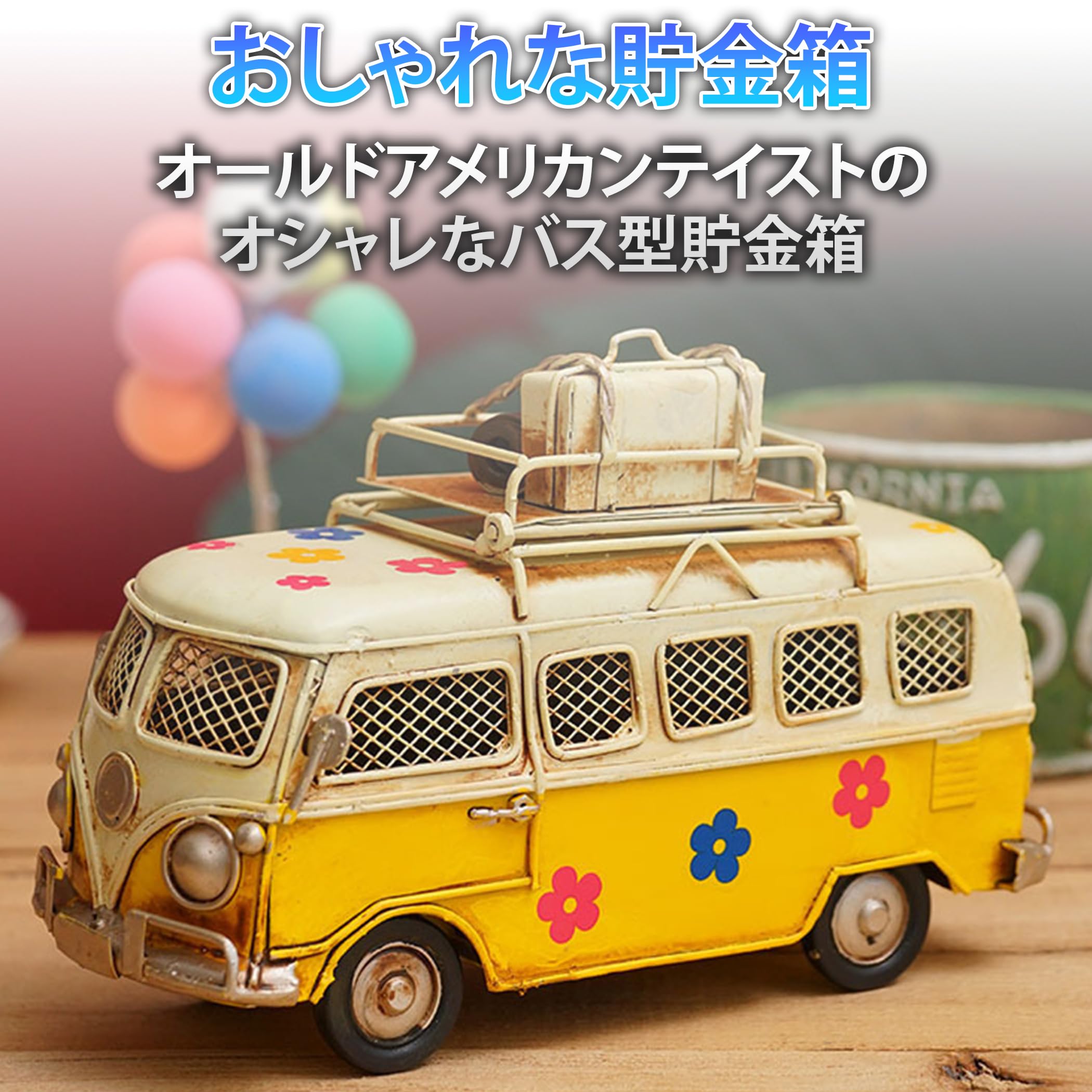 【数量限り】Felimoa 貯金箱 アンティーク風 レトロバス型 ブリキ製 インテリア アメリカン雑貨 (イエロー)