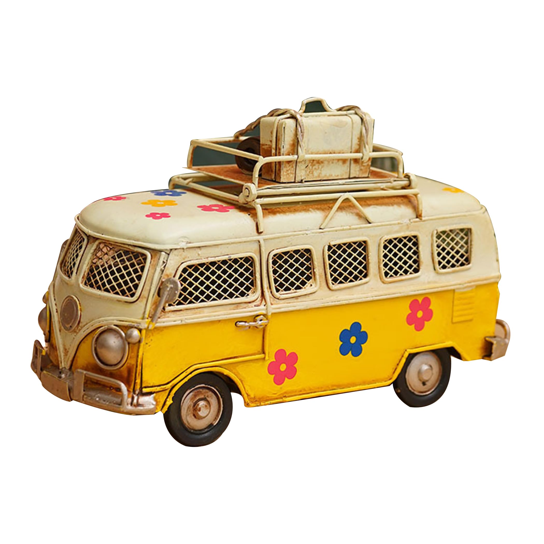 Felimoa 貯金箱 アンティーク風 レトロバス型 ブリキ製 インテリア アメリカン雑貨 (イエロー)