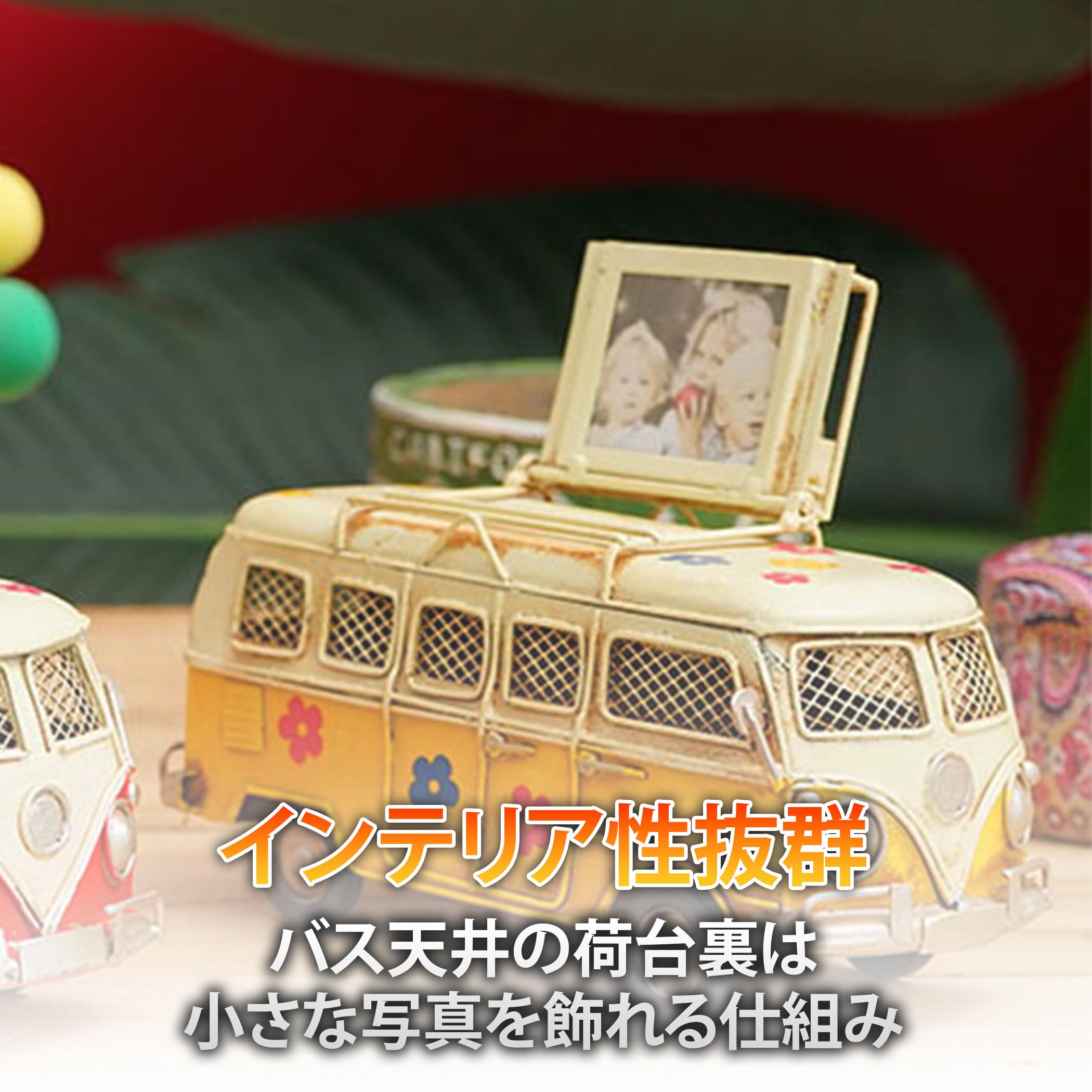 アメリカンテイストのおしゃれな貯金箱:オールドアメリカンテイストのオシャレなバス型貯金箱です。レトロなバスの上に積まれた荷台部分を開けるとコインを入れる穴が有り、貯金箱としてお使いいただけます。バスの下側に取り出し口が有る設計です。