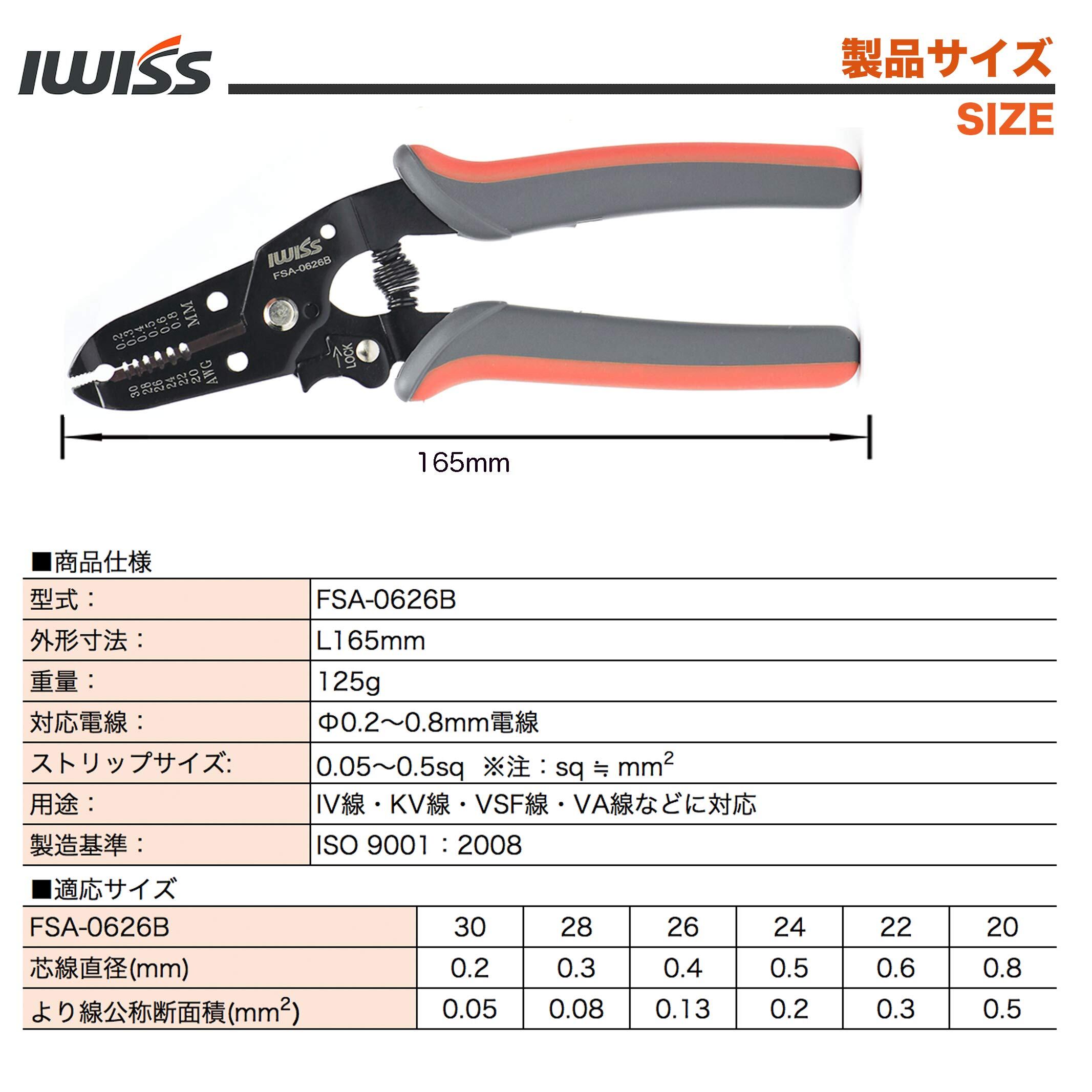 アイウィス(IWISS) ワイヤーストリッパー 単線 より線 兼用 (細線用(線芯直径 0.25~0.8mm))