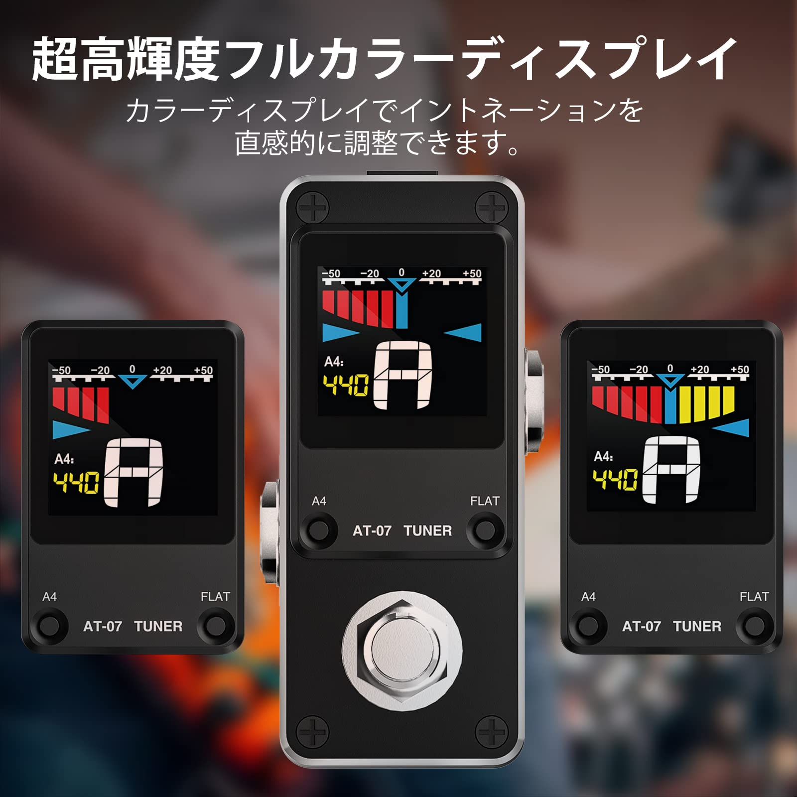 ??【高輝度画面】 チューナー・ペダルには、イントネーションを直感的に確認できるカラー液晶ディスプレイを採用。 カラフルなディスプレイは、暗いステージや日当たりの良い広場など、明るい場所や薄暗い場所でもはっきりと見えます。