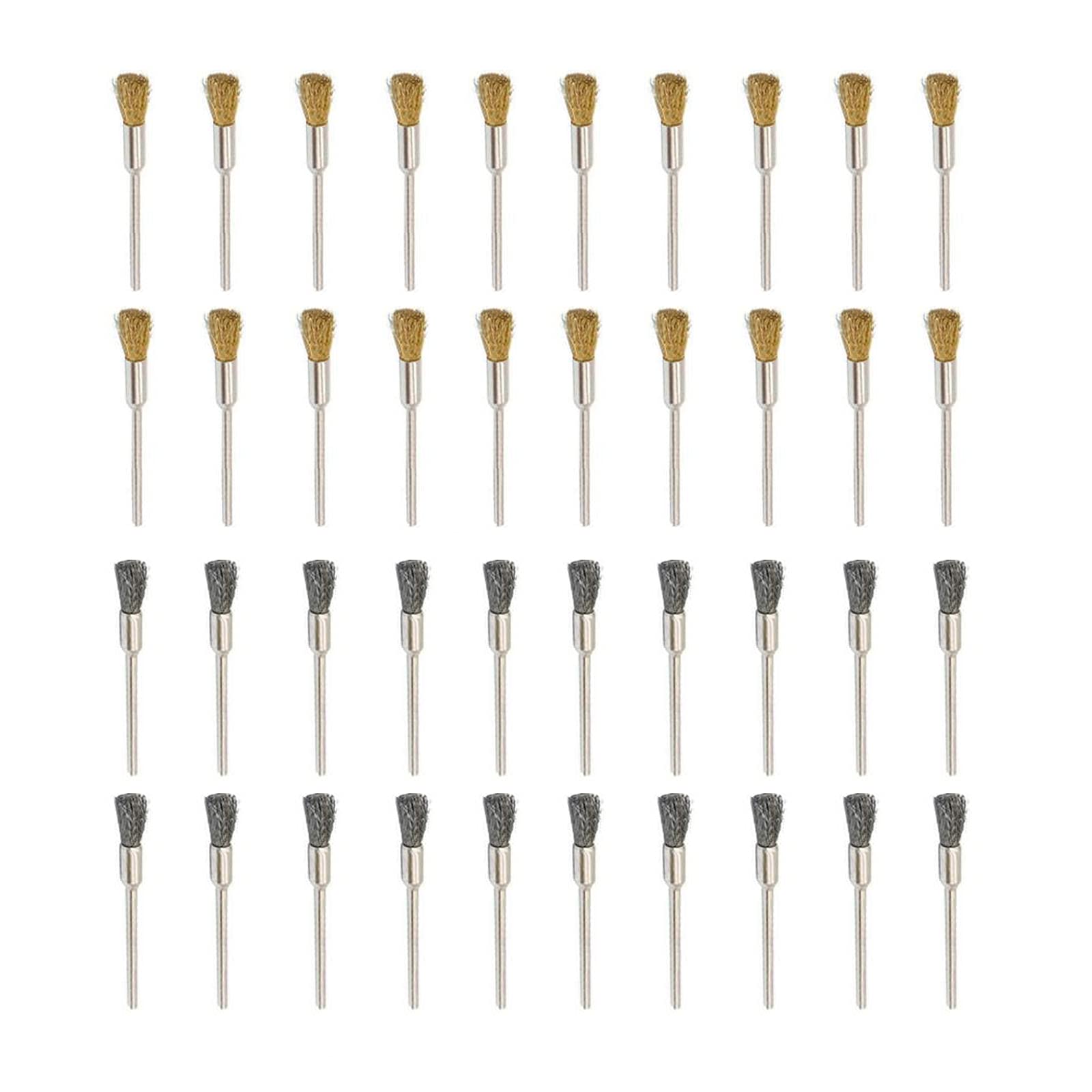 ルーター ブラシ 40個入り 筆型 真鍮ワイヤーブラシ 鋼ブラシ 2.35mm軸 研磨ブラシ ドレメル 回転ツール アクセサリー