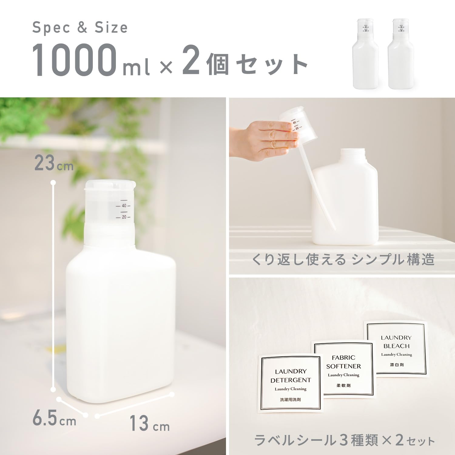【努力特価】レック(LEC) 押して計量 詰め替え 洗剤ボトル 1000ml 2個セット ホワイト