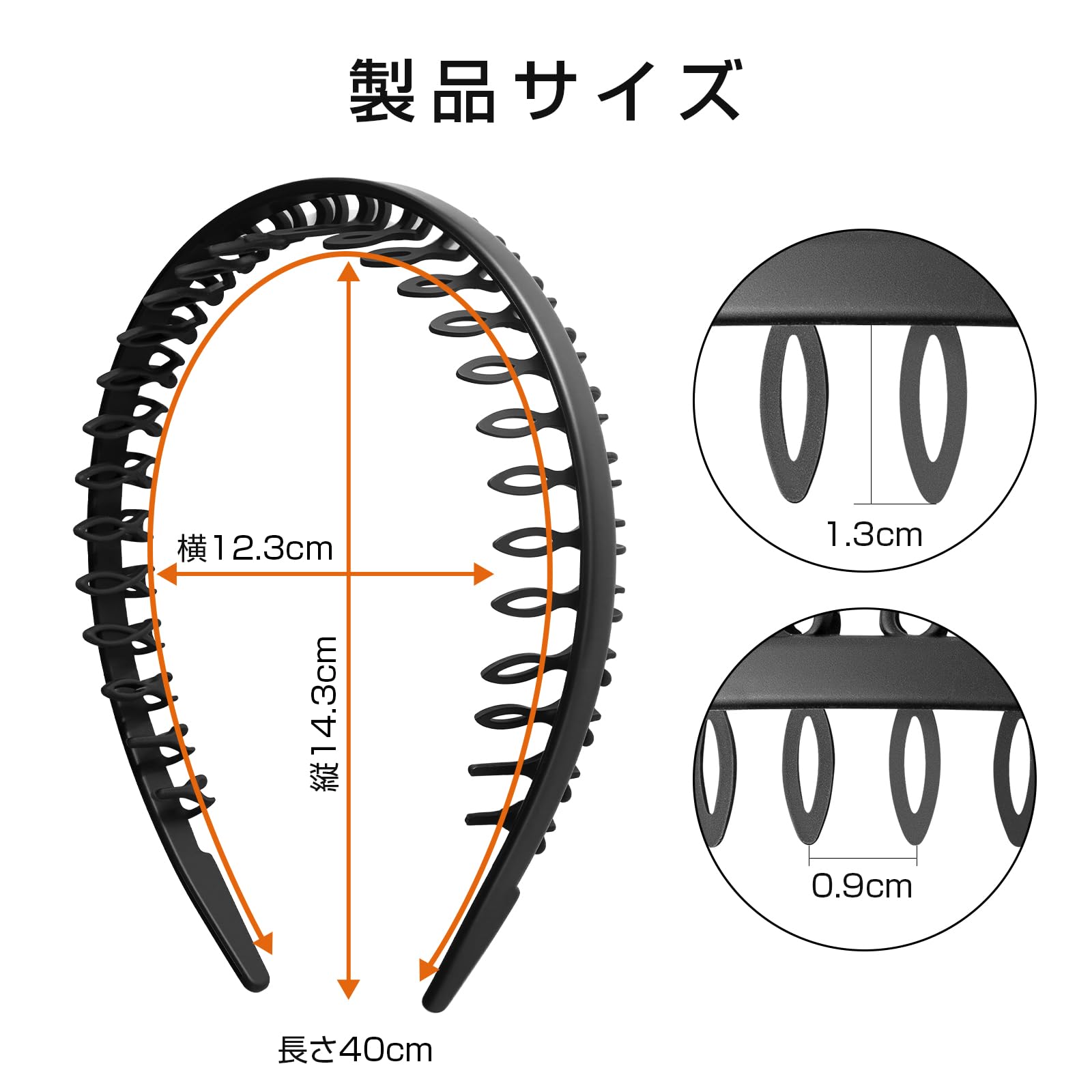 KISARG カチューシャ ヘアバンド コームタイプ 前髪留め メンズ レディース兼用 洗顔用 痛くなりにくい つや消しブラック