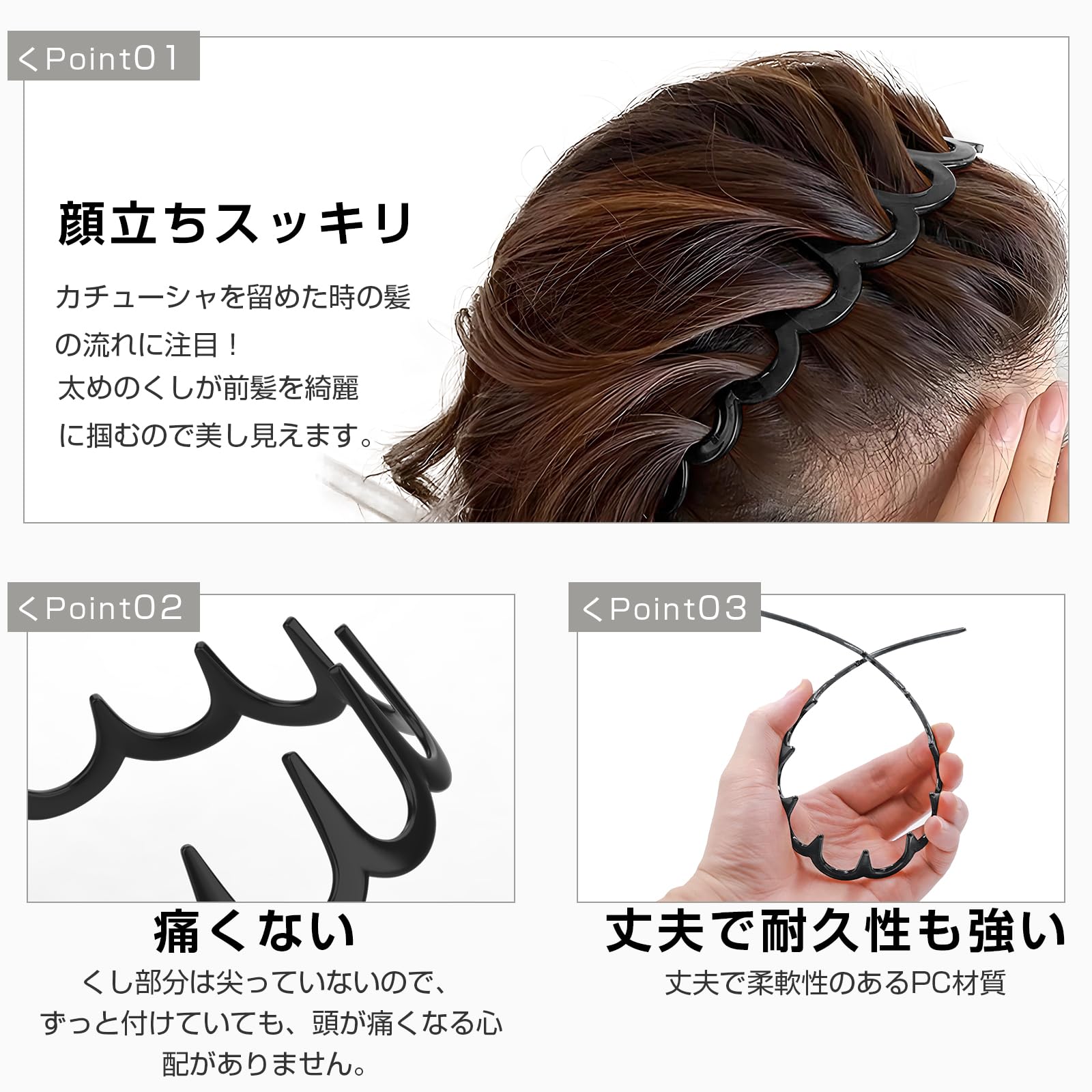 【男女両用のカチューシャ】ミディアムヘア、ショートヘア、ロングヘアを問わず様々な髪型にも合わせられ、頭につけるだけなので、どなたでもお手軽にご利用頂けます。??【 注意点 】 長時間つけていると痛みを感じる恐れがあります。痛くなったら無理をせず、すぐに外してください。