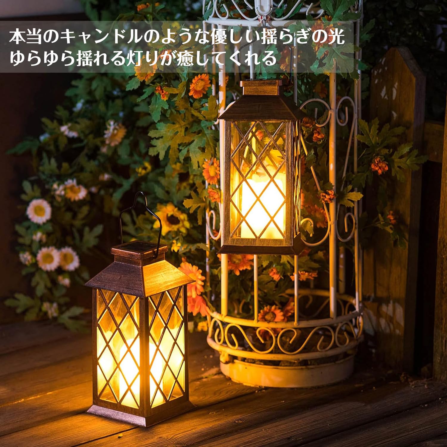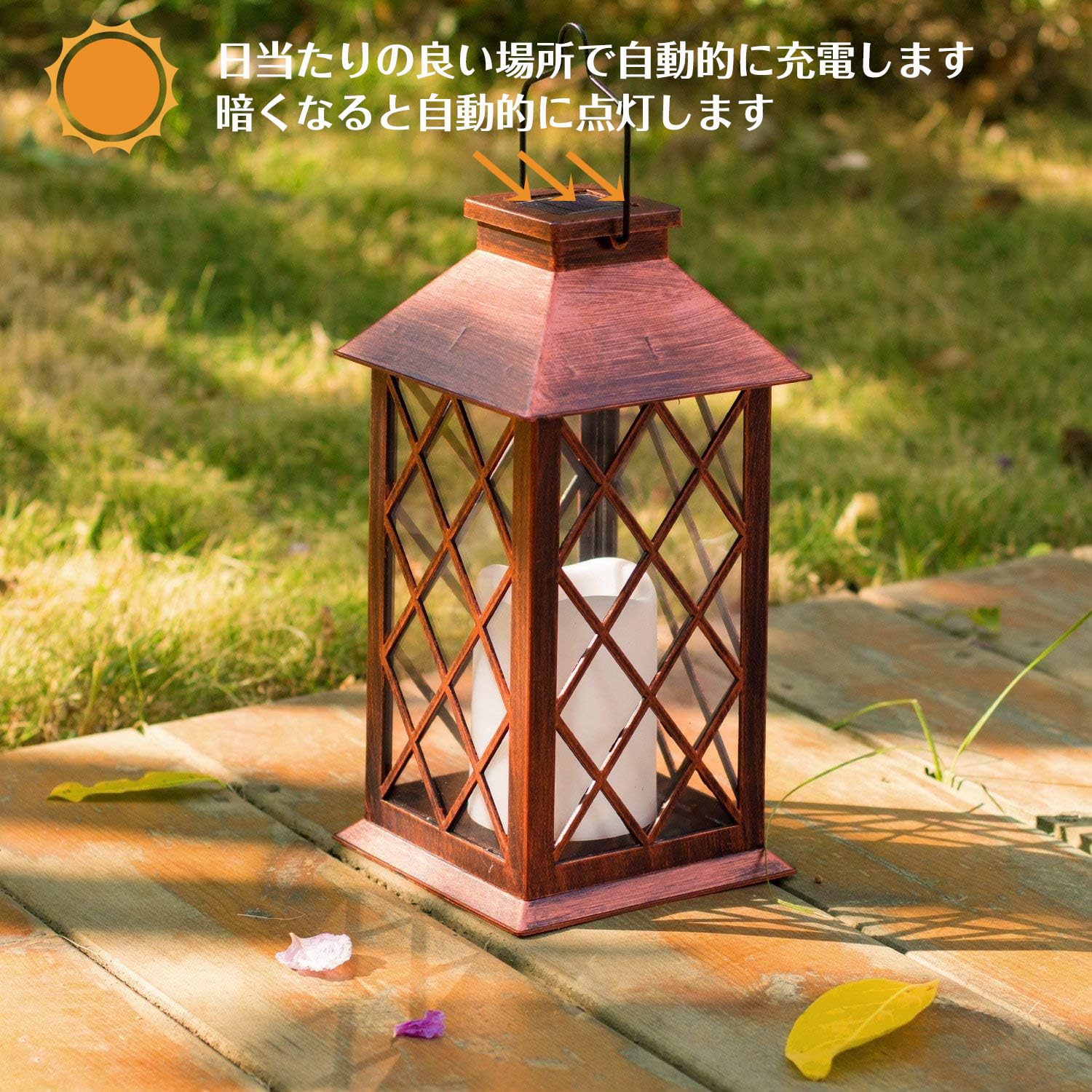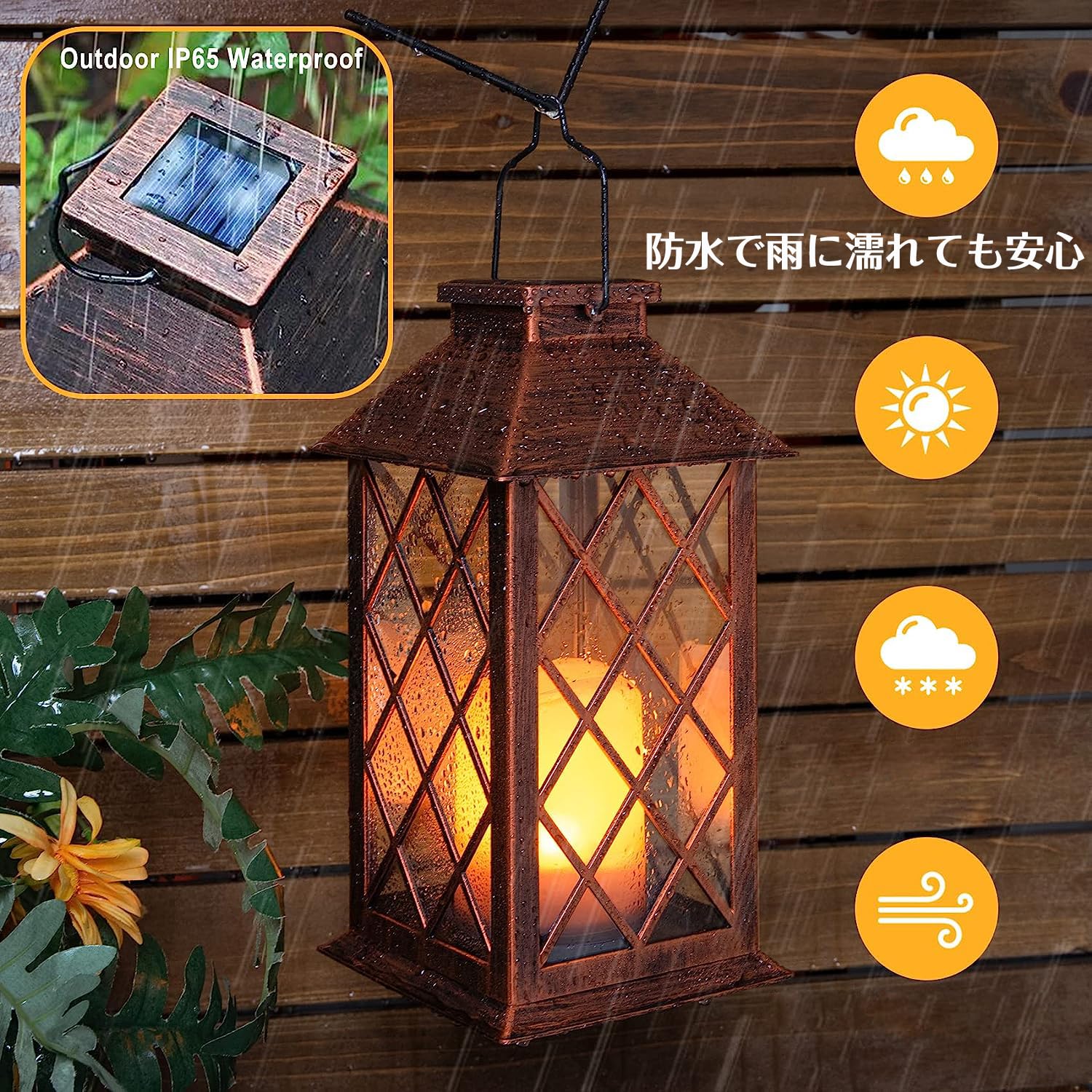 Potphiee ソーラーランタン ガーデンライト ソーラー キャンドルランタン ゆらぎ 炎 キャンドル ソーラーライト 屋外 防水 吊り下げ 置き型 照明 暖色 自動点灯 おしゃれ 庭 ガーデン ベランダ 歩道 アウトドア 飾り ライト アンティーク