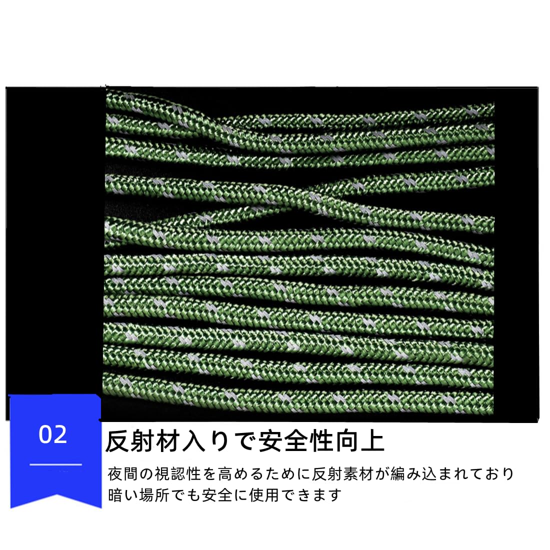 反射材入り:反射材をロープに入れるので、ご使用の時夜でも視認性がとても高くはっきり見えます。屋外活動や夜の確認に役立ちます。