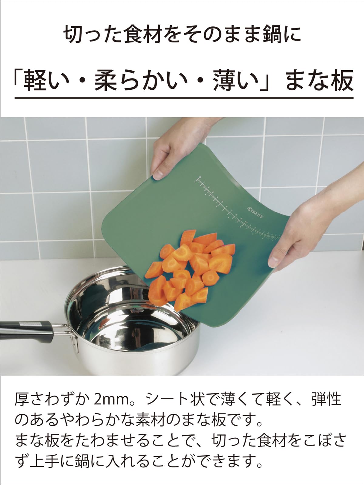 京セラ まな板 抗菌 柔らかい 軽量 目盛り スタンド 付き シートまな板 カッティングボード 漂白 除菌 OK ボタニカルグリーン 日本製 CC-09BGAZ
