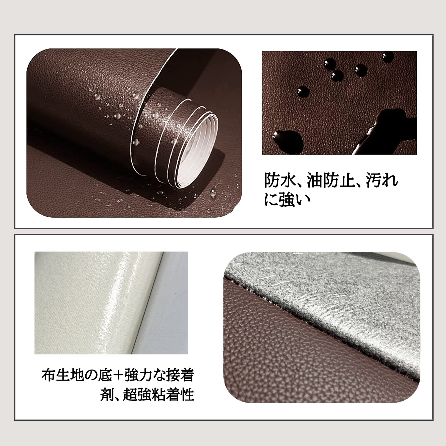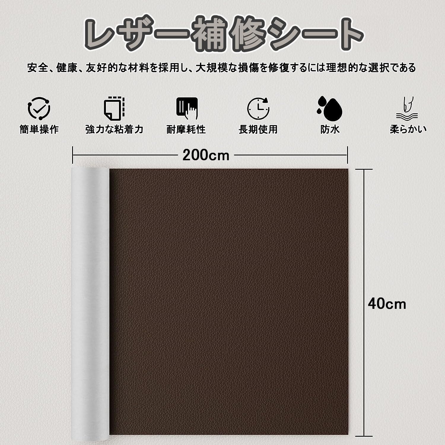 Ahialstue 合皮 補修シート 大判40cm*200cm レザー補修シール 合皮補修パッチ 合皮補修テープ ソファ 自動車シート ソファー パソコンチェア 椅子 ハンドバッグ 車の座席用 粘着 革 補修 家具補修 ダークブラウン
