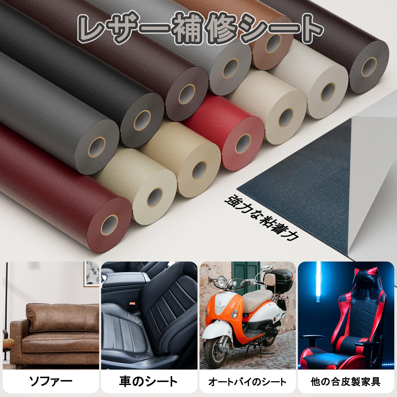 【使用便利・広く使われている】簡単操作であるレザーシートです。使用前に損傷した表面を清潔にして、必要な形状とサイズをカットしてから、裏紙をはがして、パッチを損傷した表面に正確に貼り付けます。また、本修復テープは古典的なパターンと色を持ち、ソファ、家具、自動車シート、ハンドバッグ、スーツケース、ベルト、ジャケット、各種DIY手芸品などに広く適用されています。