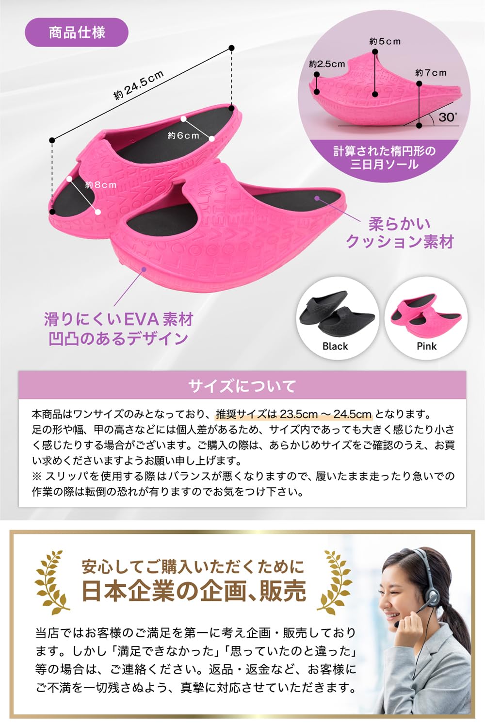 [Tomjen] ダイエットスリッパ 【理学療法士監修の履くだけながらエクササイズ】(美脚、メリハリボディを同時に目指せる) 健康スリッパ 健康サンダル 体幹トレーニング ダイエットサンダル サイズ23.5〜24.5cm推奨 ブラック(ピンク)