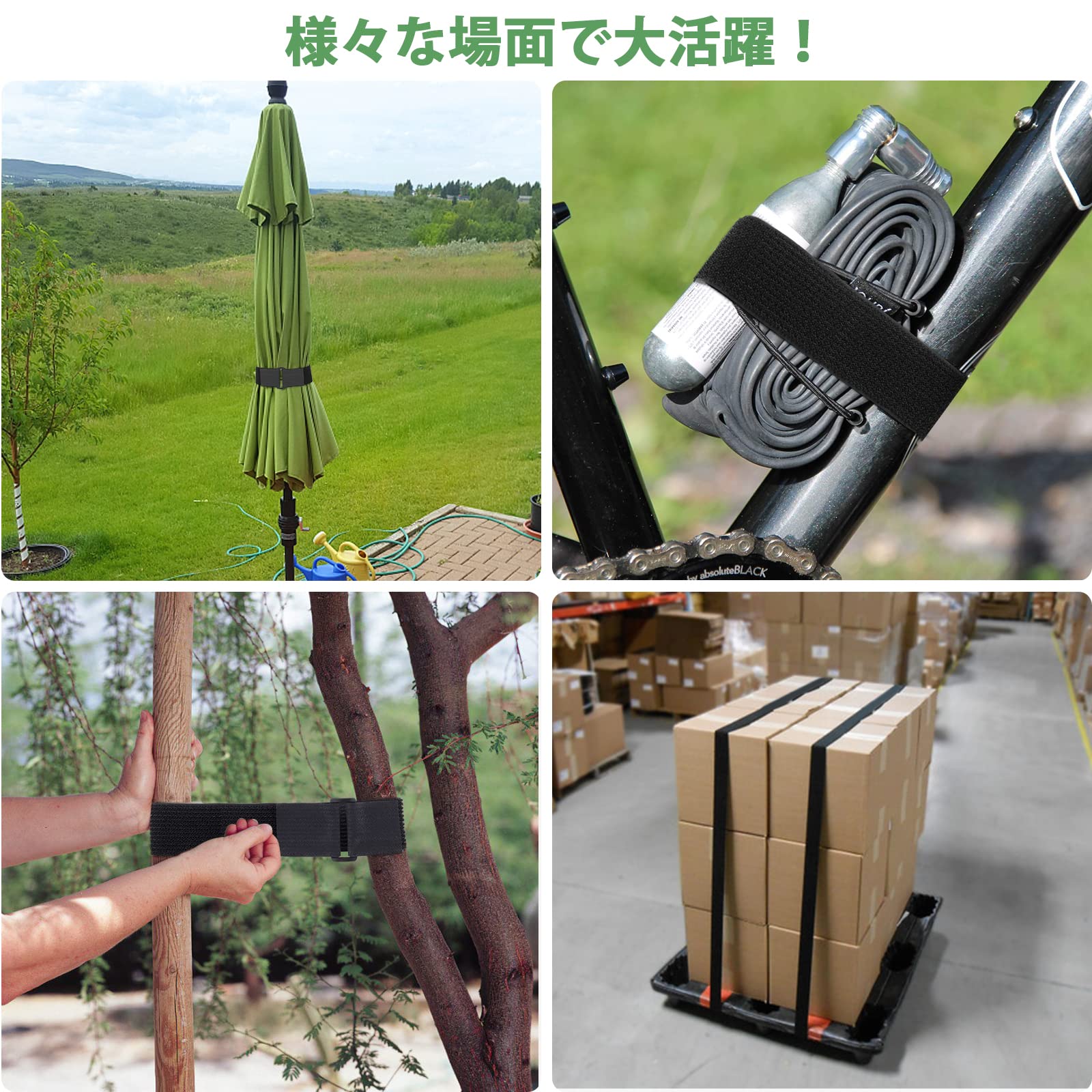 【ベルクロ自粘性が強い】フックストラップとループストラップは同じ側にあり、粘着性があり、安定しており、脱落せず、再利用可能です。付属のバックルと一緒に使用してアイテムをしっかりと結び付けることができます。