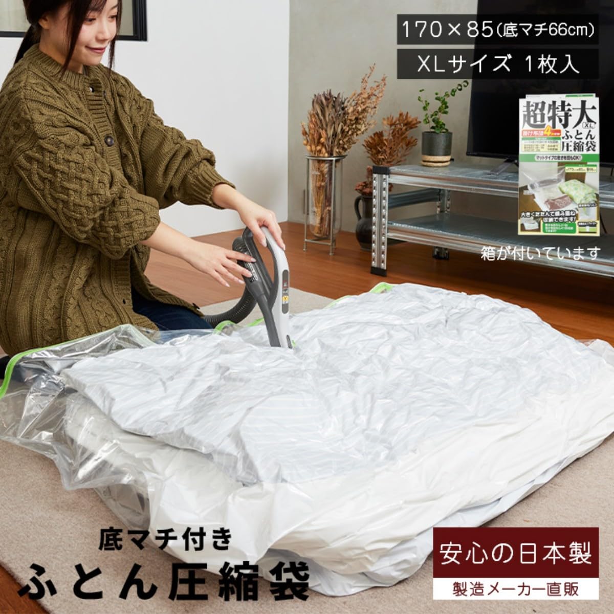 【新着特価】布団圧縮袋 超特大 XLサイズ 1枚入り / バルブ式 圧縮袋 ふとん 掃除機対応 布団収納 日本製 立体圧縮 石崎資材 FL-03B