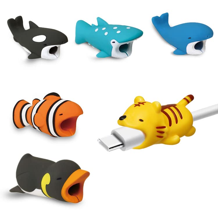 ケーブルプロテクター 可愛い動物 断線防止 充電ケーブル 保護カバー ドプロテクター 6個セット (タイプ1)